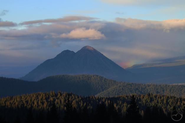 It is worth noting there were a few other disks floating to the south of Mount Shasta that would have been nice to capture with the mountain, if the view from the north were not obscured by clouds. However, the clouds to the north looked like a massive wave about to crash down on Black Butte. Unexpectedly, the clouds yielded a small rainbow just below the small mountain. It was a surprising sight, and one I was glad to preserve.