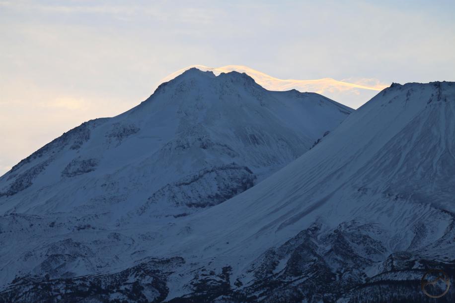 Though Mount Shasta remains in shadow on the north side, the wispy lenticular catches morning light.