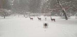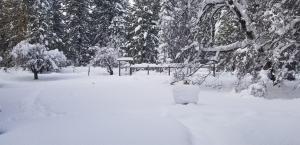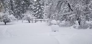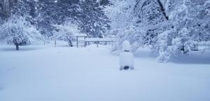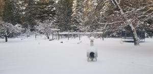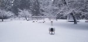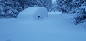 My house is on the divide between the Sacramento and Klamath watersheds. This means we are higher up and more exposed to the weather. Consequently, we always get more snow than in town and certainly more than the area to the north, where the rainshadow of Mount Shasta has sway over the weather.