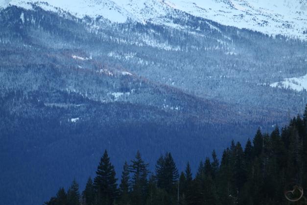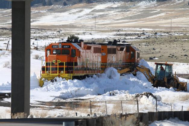 On Friday the system finally passed and the sky cleared for a few hours. It was a good chance to get out and see how the storm had impacted the land at the foot of the mountain. Conditions were beautiful but things were a mess. Snow clearing activity continued at a brisk clip all over town. Big rigs that went off the freeway were being removed. There was even a train that got stuck in the snow that had to be rescued. All in the normal course of events for a storm like this, I guess.