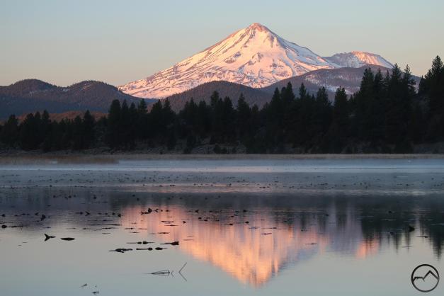 From our campsite, we could look out across the lake at Haight Mountain (left) and West Haight Mountain (right). They were good gauges for where the sun was and when it was time to head over to the east side of the lake where the view of Mount Shasta was a little better.