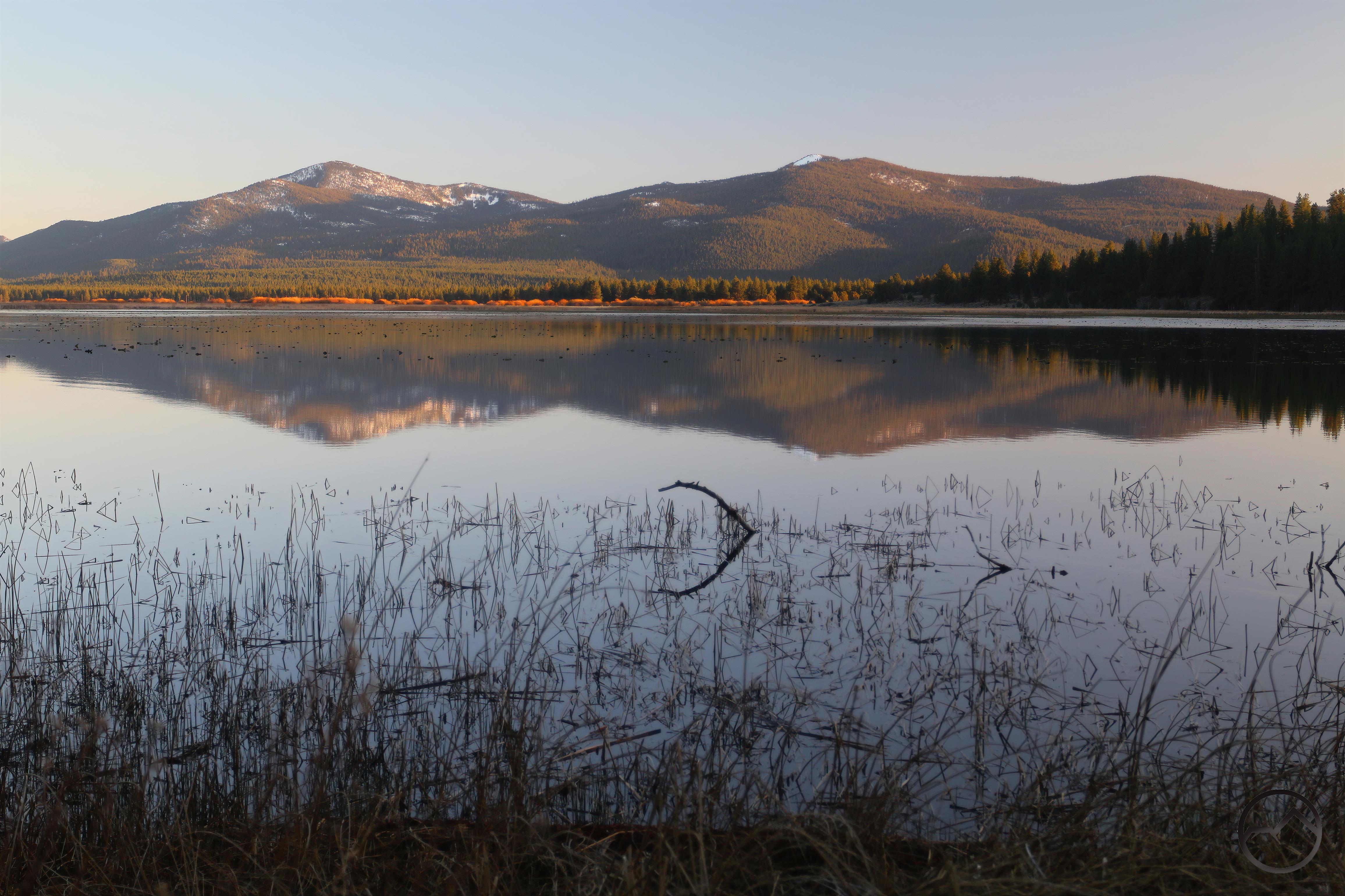 In the morning I headed back to the east side and caught the mountain in all of its sunrise glory. The birds (which are ubiquitous at Orr Lake) were already up and active and were cacophonous. There was just enough wind to keep the reflection getting too clear but the bright color of the sunrise still looked great against the water.