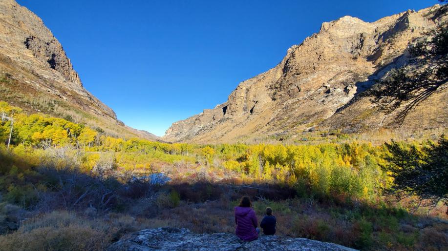 Mom and son enjoy a morning view of Lamoille Canyon.
