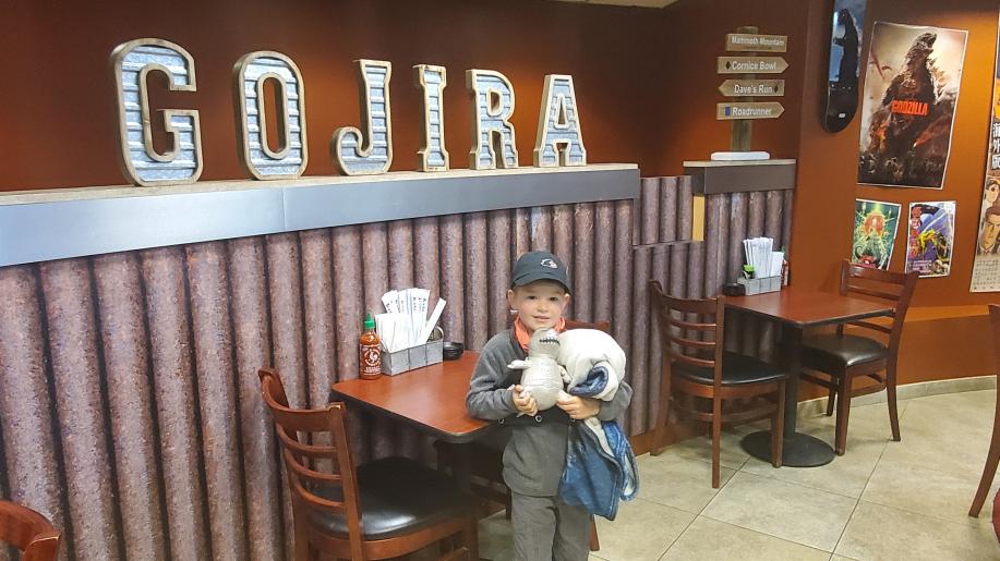 My youngest, an avid Godzilla fan, enjoyed his sushi lunch at Gojira with his stuffed Mechagodzilla and Godzilla blanket. This was his favorite part of the trip!