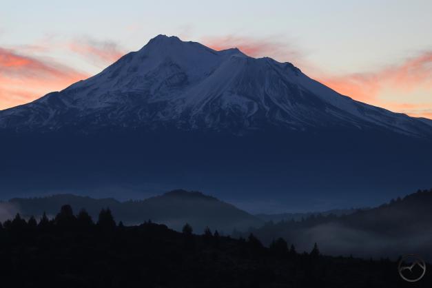 I positioned myself on top of Jemez Hill and was able to catch the sunrise. Not much fog had intruded as far as Mount Shasta but thin wisps were permeating the hills the lie to the south of my position.