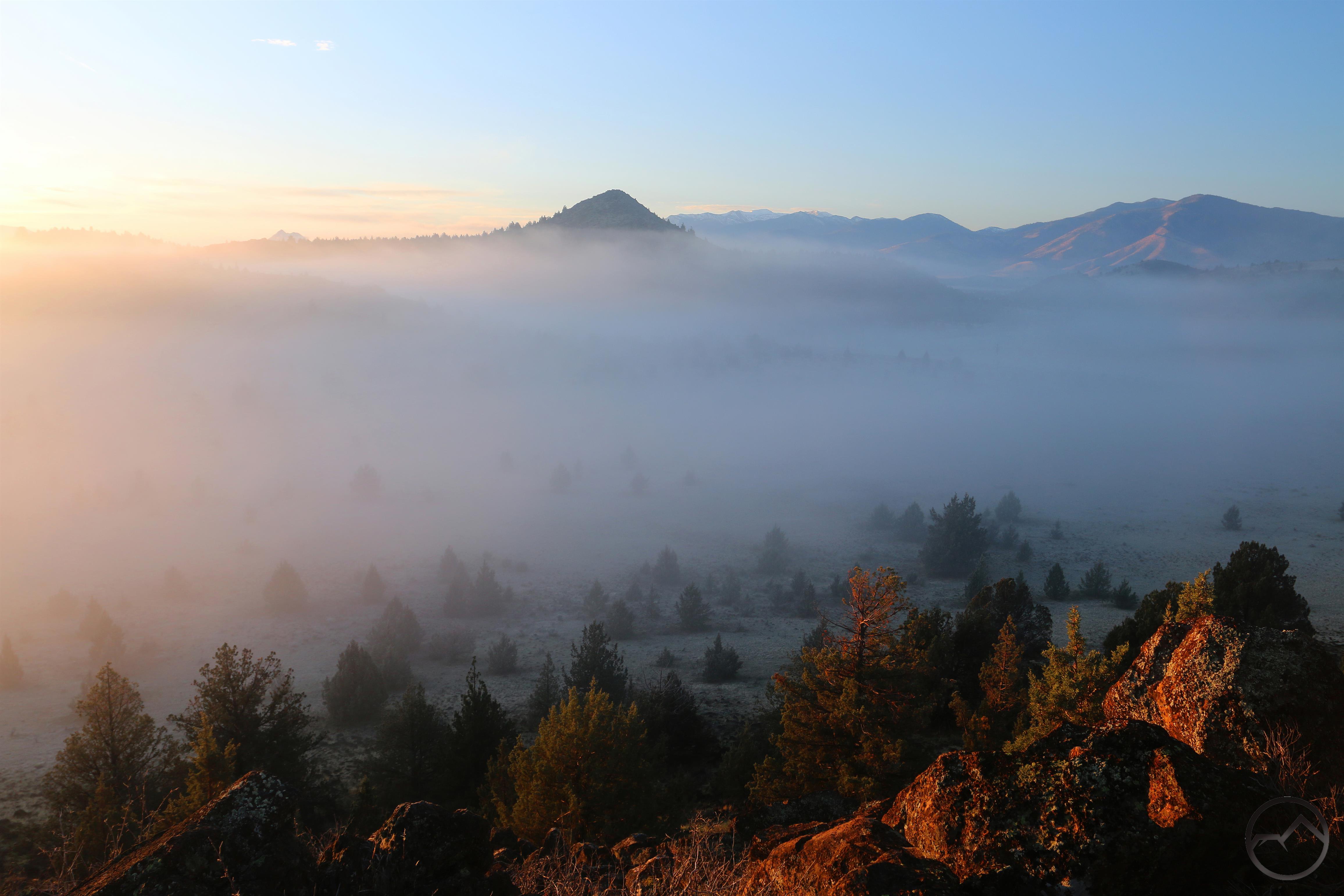 I positioned myself on top of Jemez Hill and was able to catch the sunrise. Not much fog had intruded as far as Mount Shasta but thin wisps were permeating the hills the lie to the south of my position.