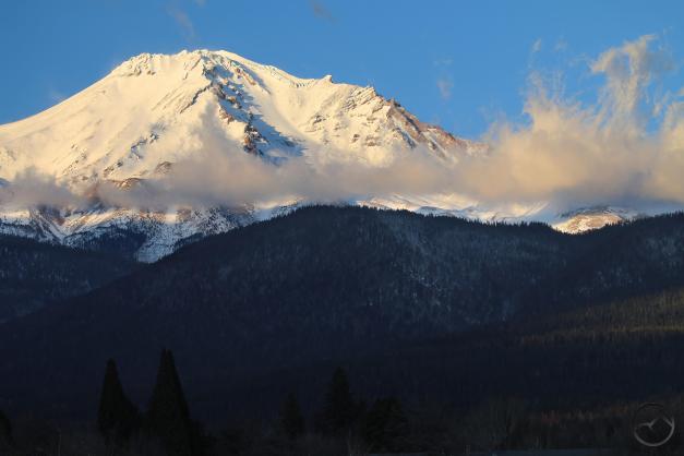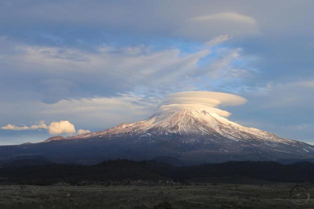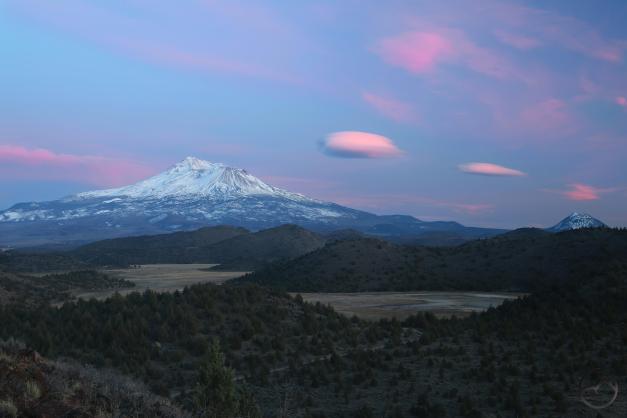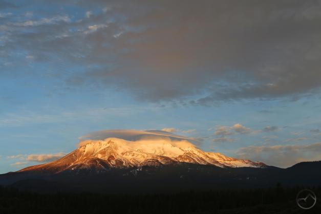 - By sunset, the cloud over the summit had overtaken the horizon to the north, meaning there would be no views of the mountain from the Shasta Valley. Nonetheless, the cloud over the summit continued to try to gather the strength to manifest one more burst of clouding building. Little disks kept forming over the billowing mass but then collapsing.