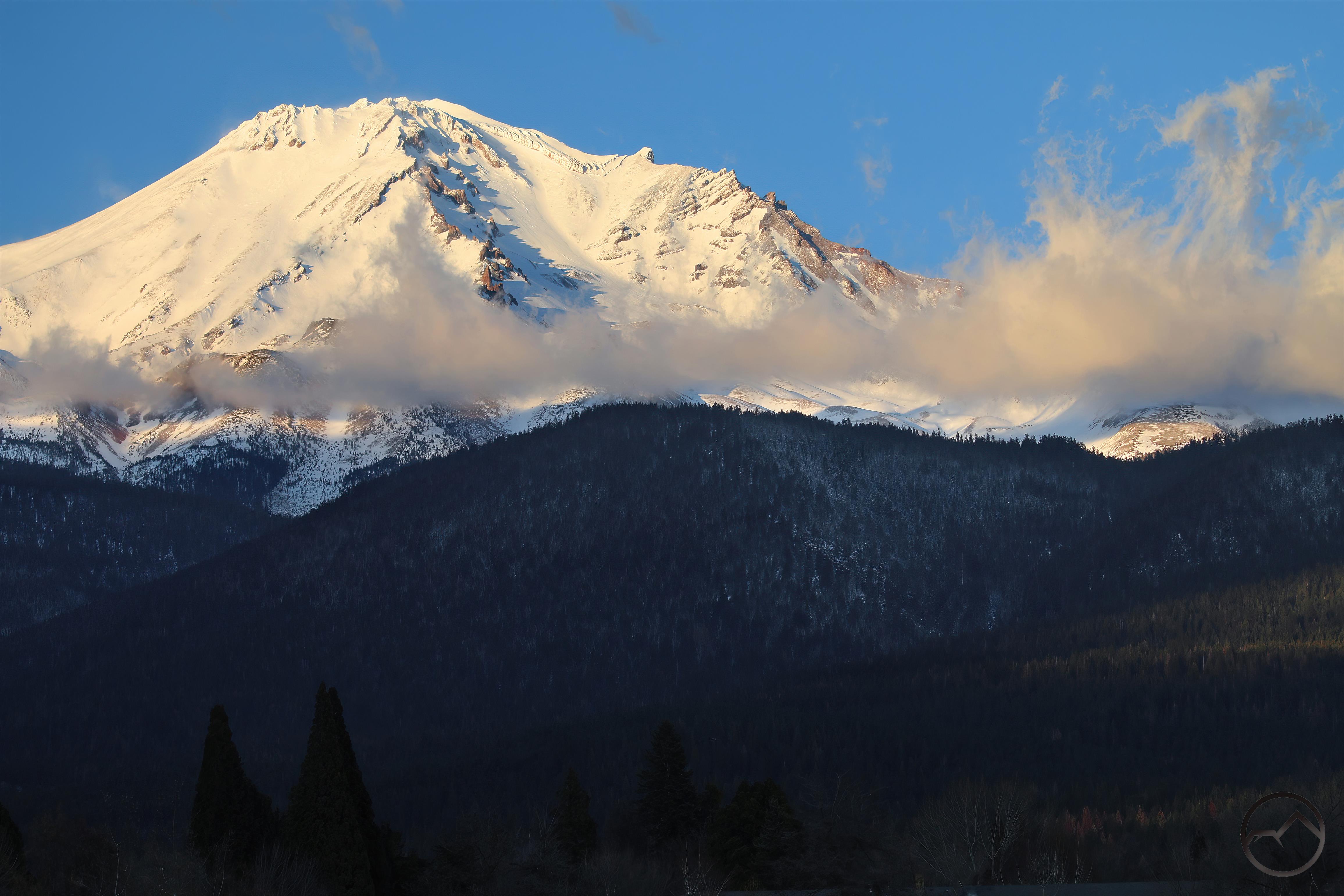 - By the time the sun sank behind the Trinity Divide, the show was generally over. The clouds to the north were overtaking Mount Shasta itself, the summit cloud had given up its definition and the southwestern cloud, which was the first of this episode to manifest, was gone.