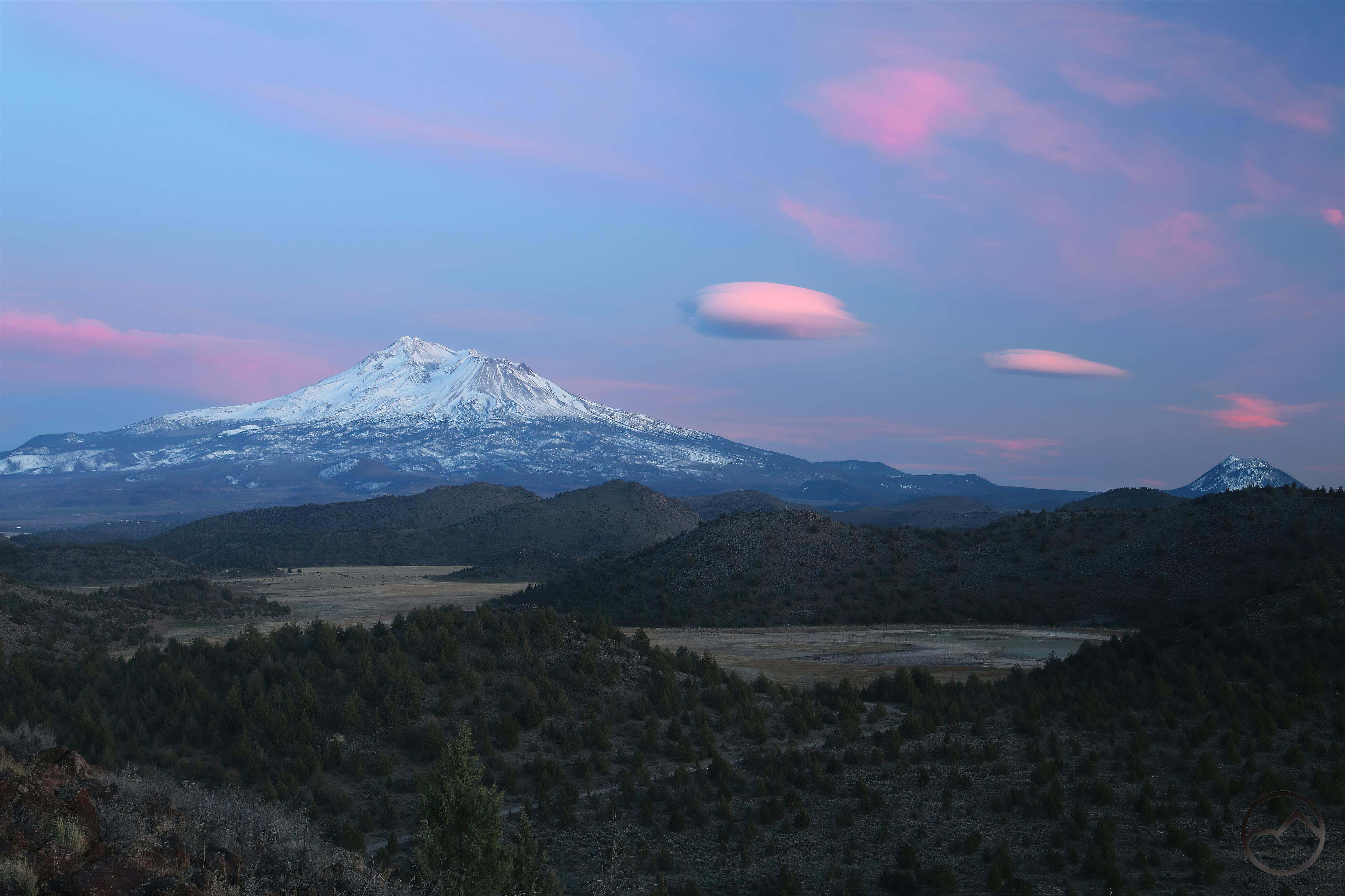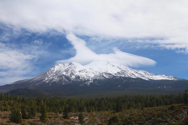 - Wednesday morning, the sky was once again clear, except for a large formation that clung to Mount Shasta above the treeline. Lenticulars are always frustrating when the obscure the mountain but it was such an interesting collection I had to head out and capture it anyway.