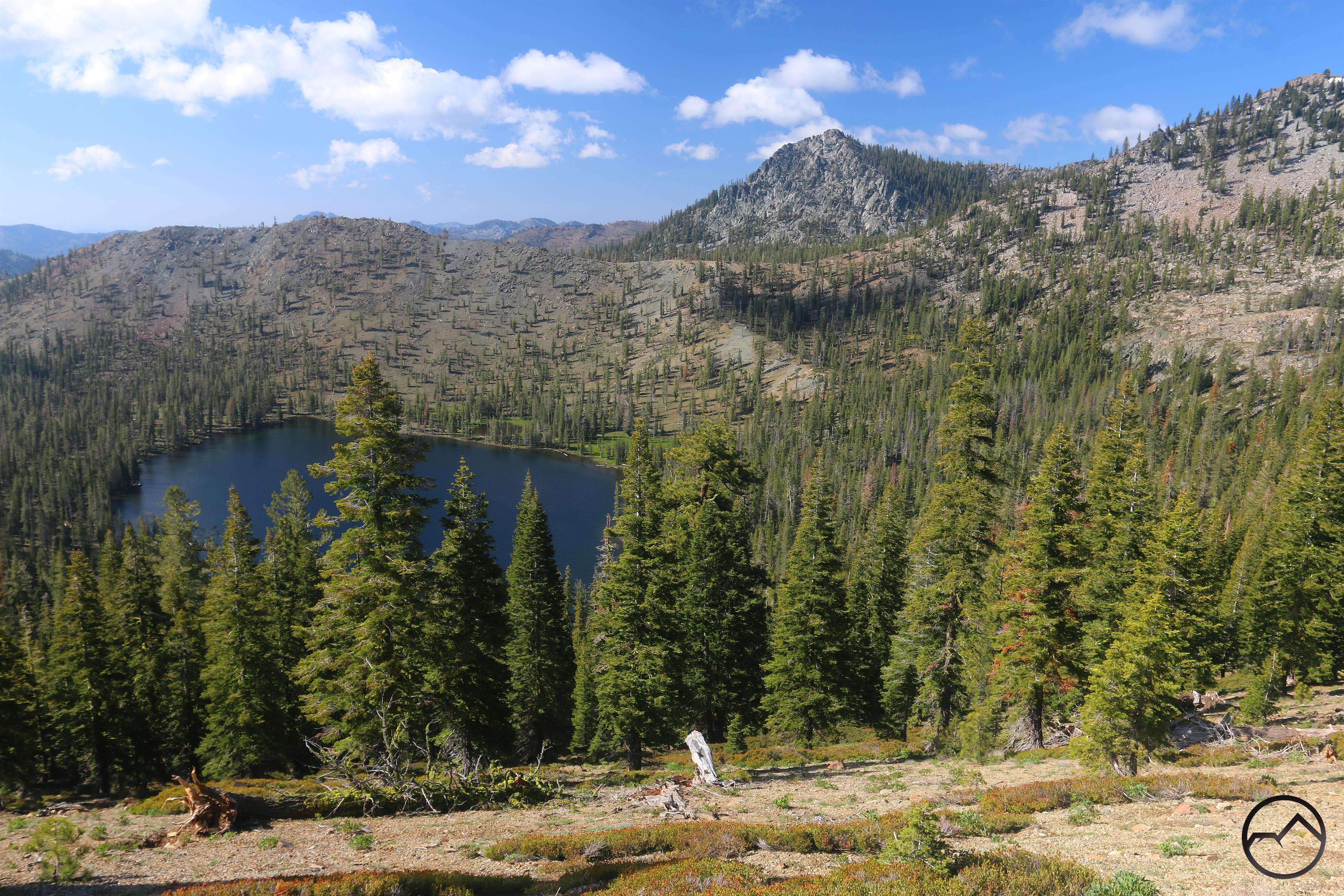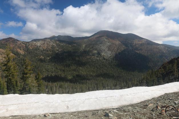 The PCT from Porcupine Lake to Deadfall Lakes is one of the most spectacular sections of the trail in this part of California. Though it had been overcast the previous day, it was clearing as we headed north, letting us take in the ample and far-reaching views. As the trail crosses from the watershed of the Middle Fork of the Sacramento to that of the North Fork, Mount Eddy looms majestically on the far side of the canyon. It was obvious that there was still a little bit of fresh snow on the summit.