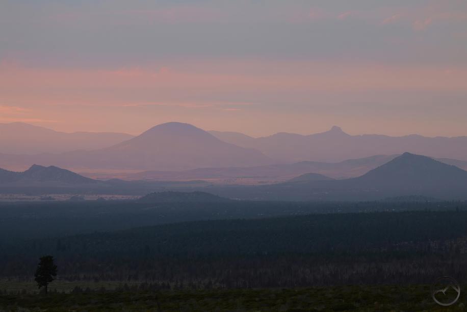 Black Mountain and Oregon’s Pilot Rock are cast in beautiful light. The layers of peaks and hills give the valley a great sense of depth.
