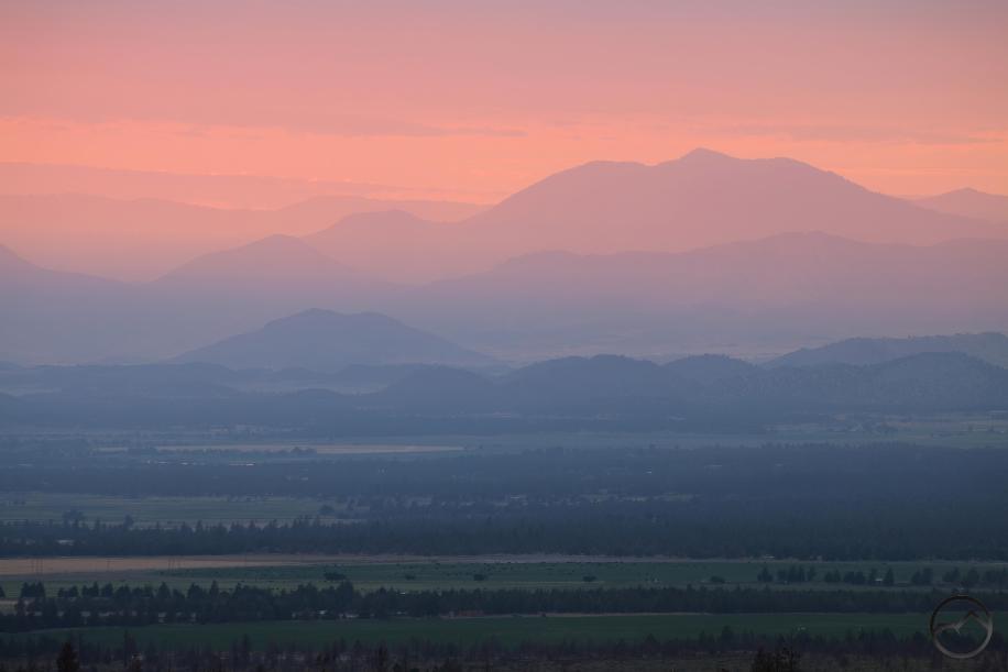 Cottonwood Peak, which rises above Hornbrook, is a prominent landmark on the Shasta Valley skyline. The hazy, glowing air of sunset really gives a sense of how large and solitary mountain it can appear at times.