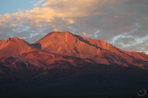 With that said, I want to report the conditions from this past Saturday, which was roughly a week after the preponderance of the snow fell on the mountain. The lowest, thinnest strata had already melted off but the higher elevations still had a fair amount left, clinging to rocks and crags and hiding in the shady nooks the are ubiquitous on the mountain. My mother-in-law was visiting and so we took her up to the Old Ski Bowl, which I was amazed to learn, we had never done before. After enjoying a picnic dinner, the kids scrambled up on the rocks while I wondered to a somewhat more isolated spot to photograph the sunset light on the mountain while it still had some snow. I was glad to have the opportunity to do so, for it proved to be another beautiful Mount Shasta sunset.