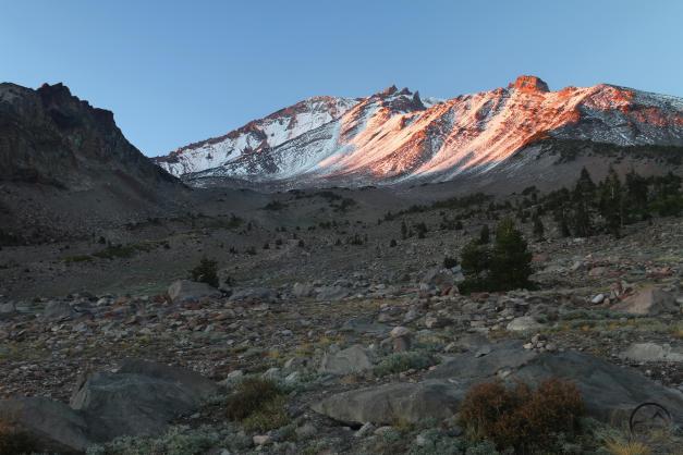 Though normally autumnal paradise, October was warm. Not hot, but warmer than normal and it made a good month to continue heading up into the high country and exploring lost lakes and rarely seen peaks. Meanwhile, the glaciers on Mount Shasta continued to spew debris and alter the landscape. Mud Creek in particular had been active all summer and this continued into the year’s tenth month.