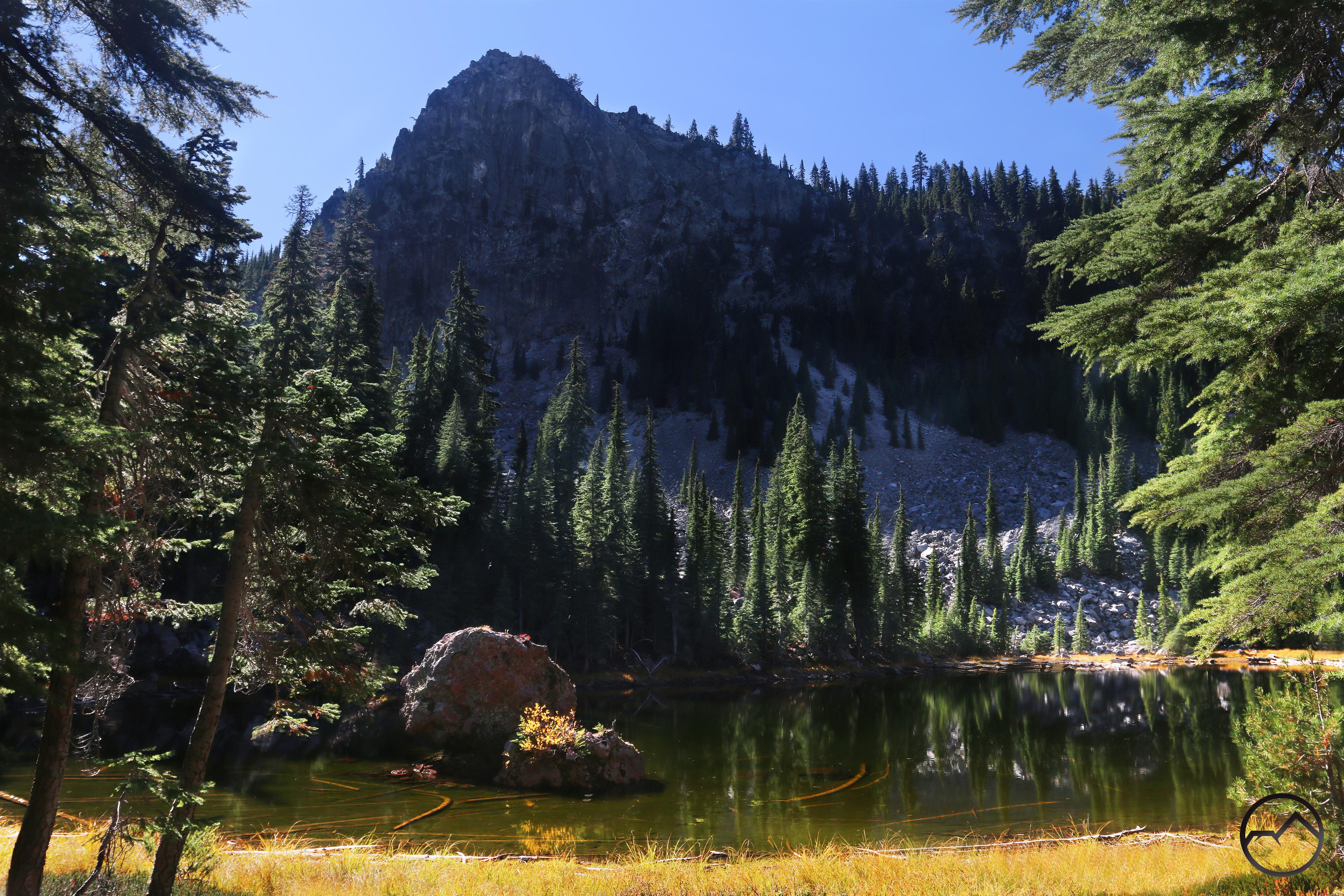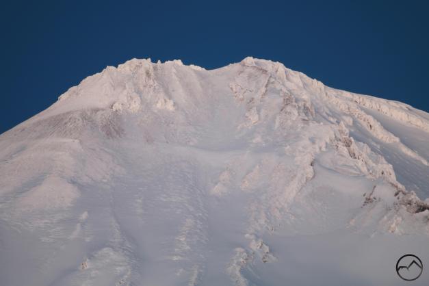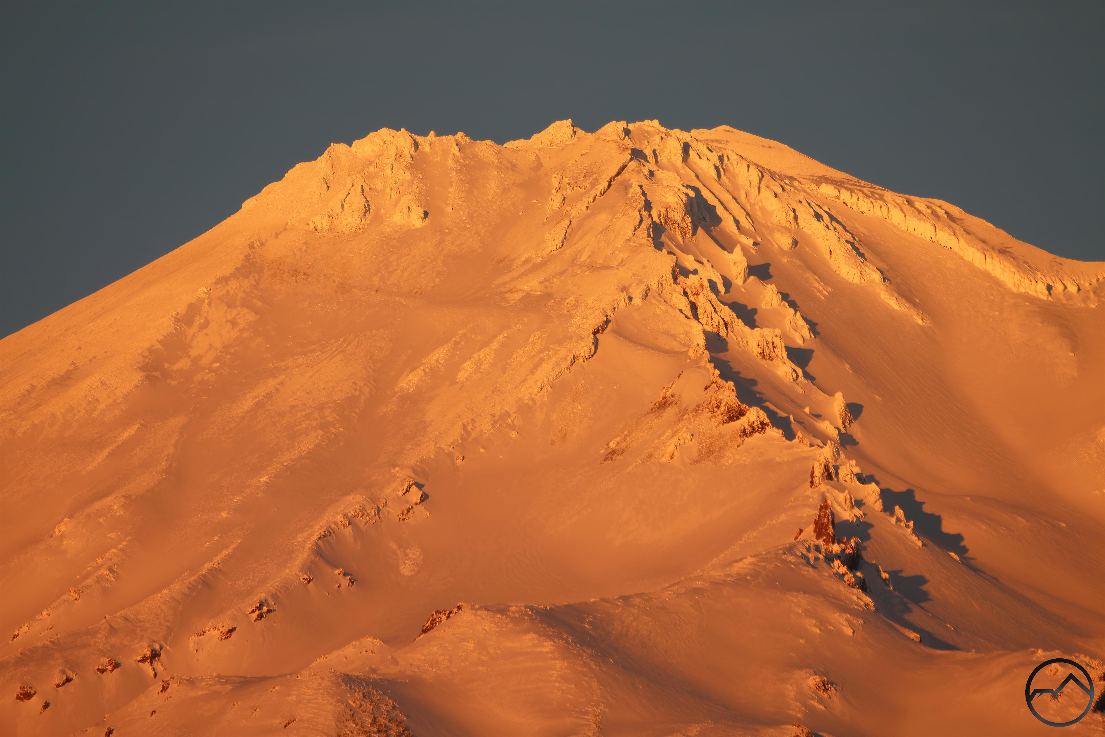 While on the summit, I decided to climb around to the Pedernal Ventana, a small arch on the peak’s southwest side. The low sun makes the arch stand out and this time the sun was near sunset. The view of Mount Shasta and the southern Shasta Valley from the arch is great. Since the arch is on Pedernal’s southern aspect the snow had melted off quite a while before I got there but it was worth checking out nonetheless.