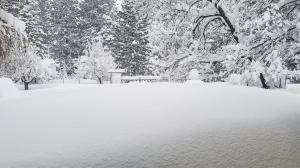 The day after the storm ended I was out early and enjoyed the fresh snow smothering everything. It was a glorious bluebird day, with fresh snow, blue sky and a warm sun. On my way home pulled out my camera to document the white conditions. I was surprised to see that the strange accumulation of snow on Mount Shasta’s west face had persisted despite the copious snow that had just fallen. Still, in most areas on the mountain it was clear that a lot of snow had fallen.