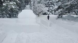 I woke up in the morning and, looking out my front door, saw a wall of snow much higher than I had anticipated. The yard stick showed 31 inches. Yikes. That was a heap of snow and it was still coming down. Indeed, it continued to snow for a few more hours and ultimately add another three inches to what had already come down during the night. The road in front of our house was no where near plowed and I5 was no doubt a mess but my wife felt like she needed to get to the clinic even though we could have just closed for the day. That meant I had to get and start clearing snow. I admire her dedication. I got her out, sent her off and spent much of the day moving snow around while managing kids diffing snow caves and such.
