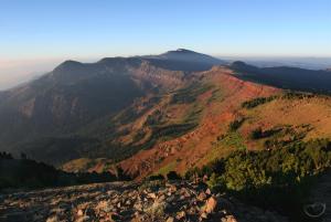 Further upstream and not quite as well appreciated is Nevada Falls. Though twice the height of Vernal, Nevada Falls’ location means it is not seen as much as its lower counterpart. It is, nonetheless, one of the most spectacular waterfalls in Yosemite. Nearly 600 feet high, the Merced races through a narrow chute before throwing itself off of the cliff with great urgency. Halfway to its rocky base, the sheer granite cliff angles outward slightly and the waterfall slams into the slope, bursting into a maelstrom of spray. At high water, the lower half of Nevada is nearly impossible to see. Even nearly a quarter mile downstream, the wind and mist in the air more closely resembles a thunderstorm than the result of a waterfall. Thus is the fury of Nevada Falls.