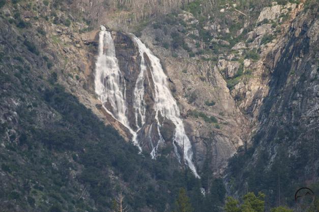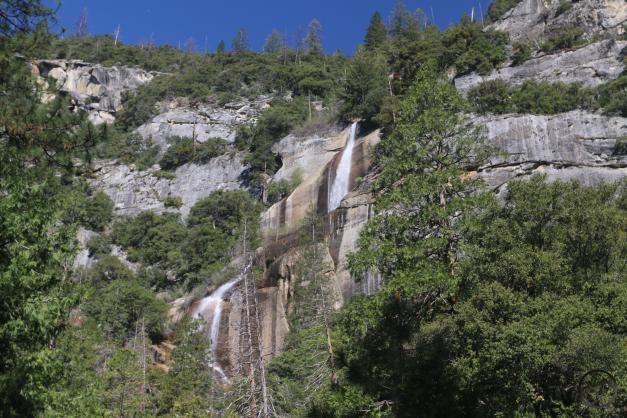 The upper part of Cascade Falls stood out dramatically from the side of the valley, with the Merced flowing far below.