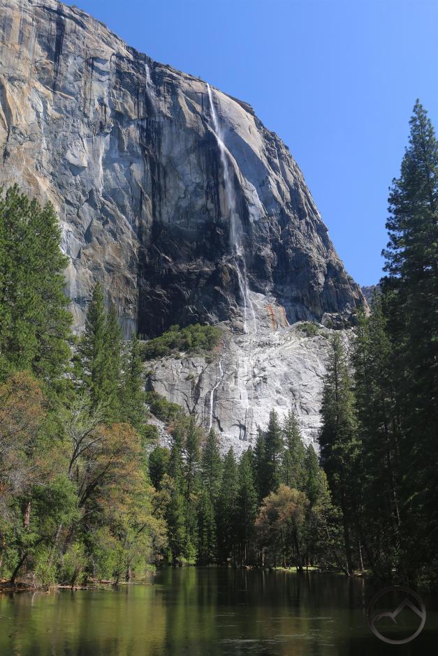 The ledges near the base of Royal Arches Cascade are a favorite valley destination for my family. The chance to look straight up the sheer cliff is one not to be missed. With the falls roaring down the rock, it was an unforgettable sight.