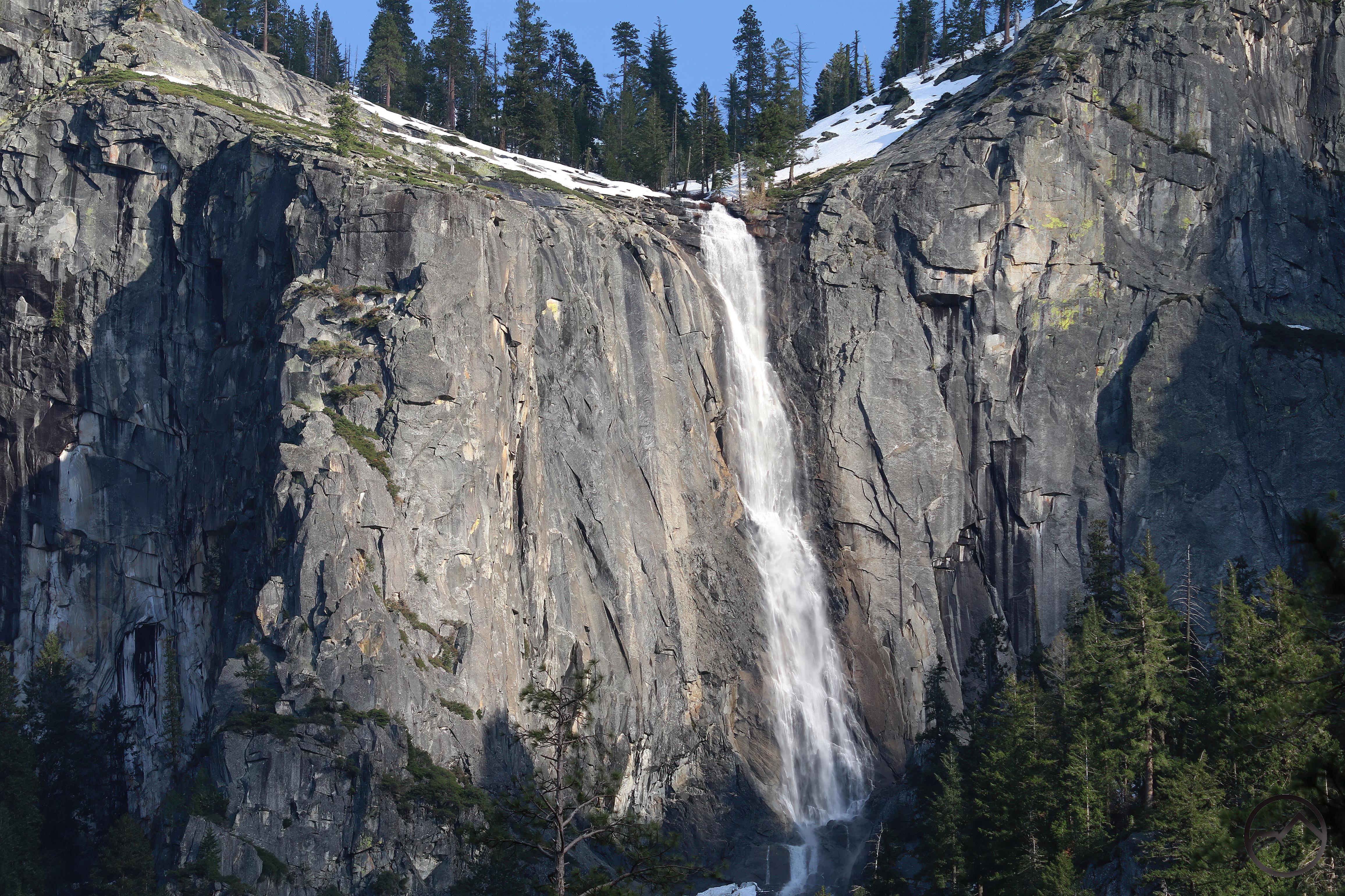 Ribbon Falls, the tallest single drop in Yosemite Valley had a strong flow.
