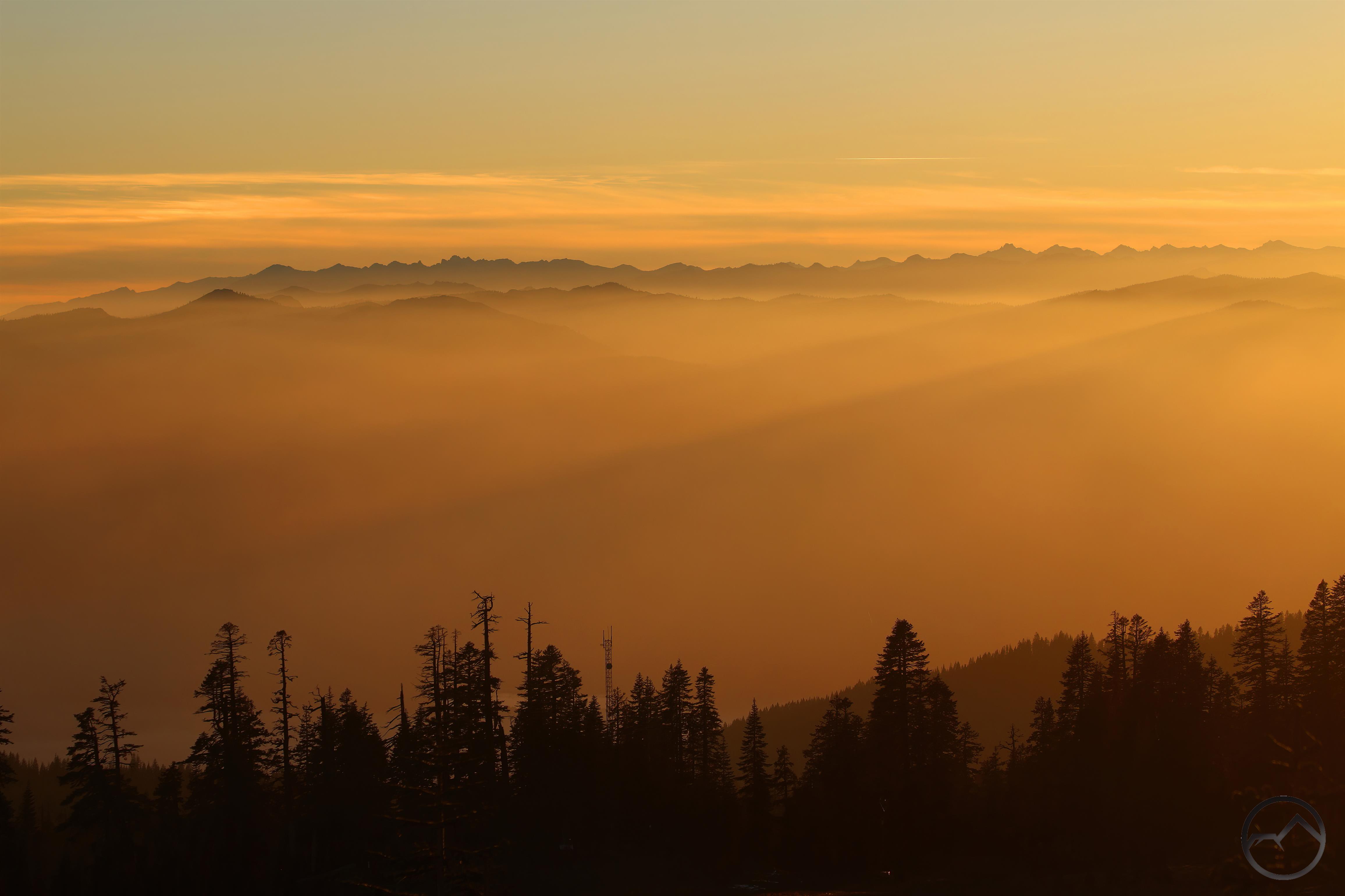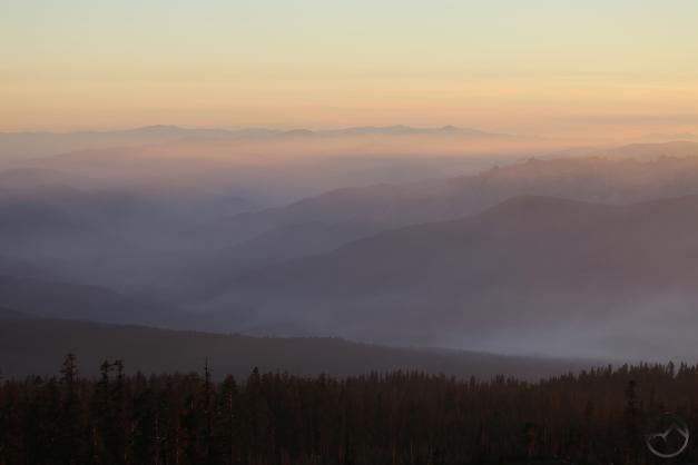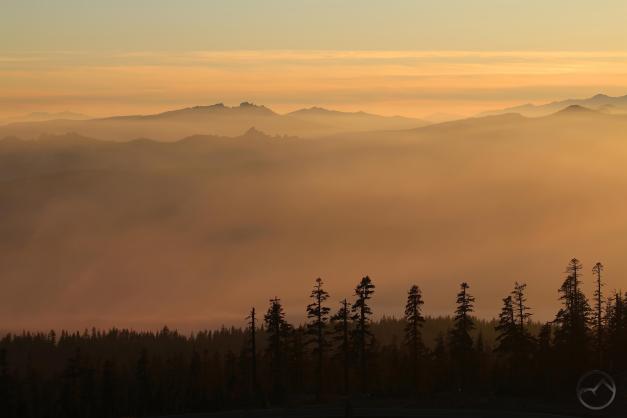 The conditions were good, but seemed less than ideal for a really spectacular sunset. The sky was clear of clouds around the mountain and a controlled burn near McBride Springs had been putting out a lot of smoke for the last few days. The haze from the burn hung too low to make the visibility at the Ski Bowl an issue but I wasn’t sure how things would look from above. It turns out there was no cause for concern. The view was incredible.