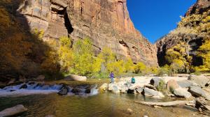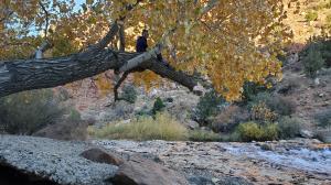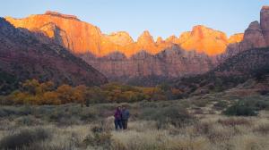 Aside from just being there and enjoying the awesome geology, the best part of the trip was the fall color and the great light. Bryce, being higher and more open didn’t have as much color but the light on the hoodoos was terrific. Zion, on the other hand, has lots of cottonwoods and I had been hoping since I planed the trip we would catch them in their autumn display. We did and it was glorious. Even though the days were short in Zion Canyon, the light just seemed to make everything glow. It’s not something easily forgotten.