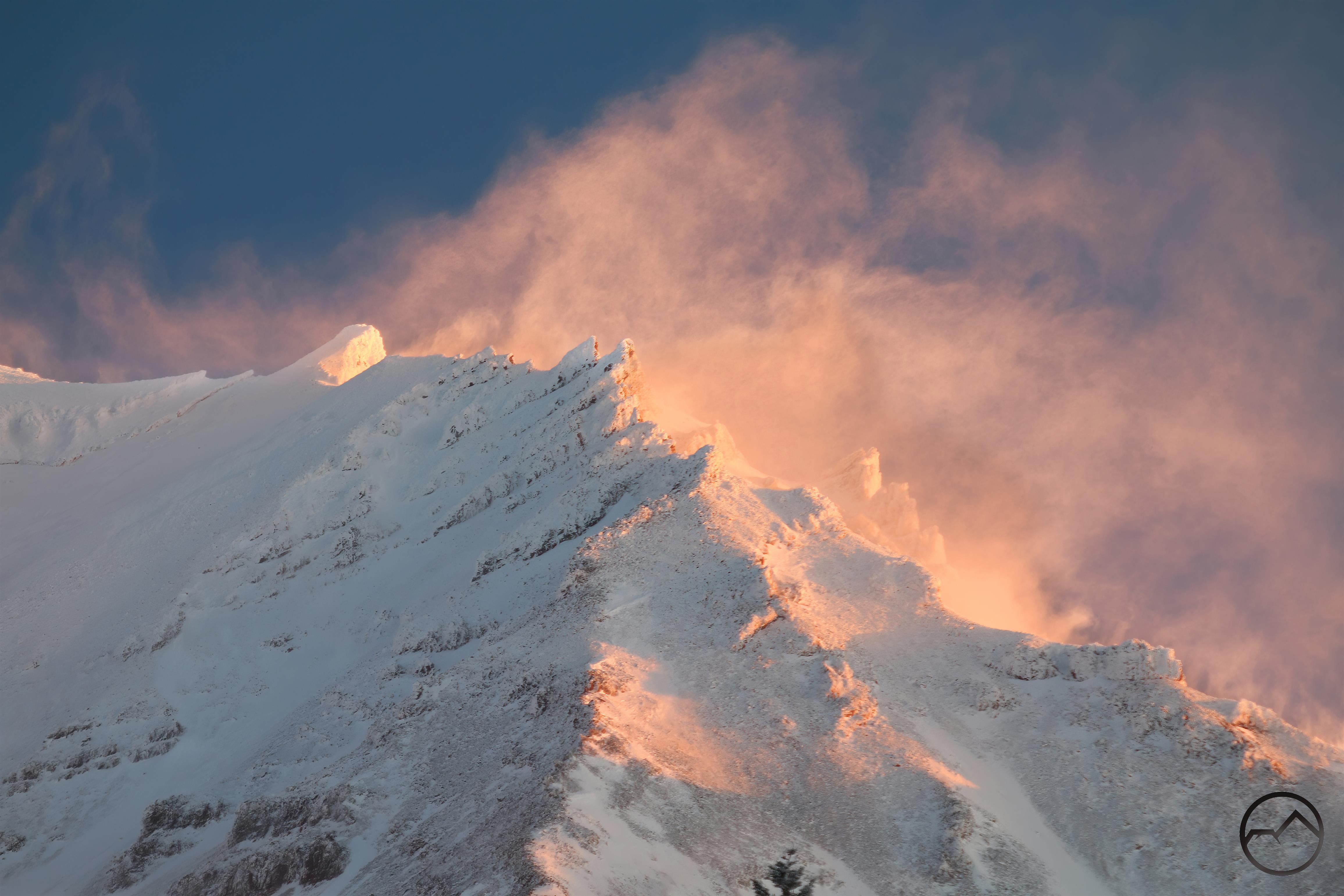 I love snow banners in general and even more when they are catching the light of the rising or setting sun. The banners on this morning weren’t sustained particularly dramatic but I couldn’t resist getting video of them anyway. Again, pure magic.