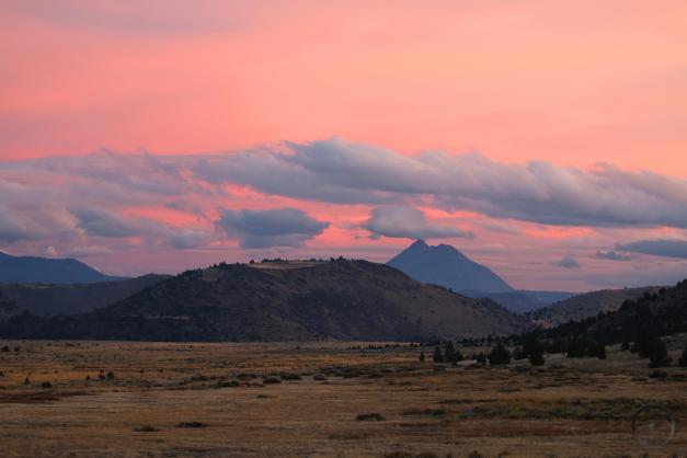 Even Black Butte got into the action. When the sky is full of color like it was at this sunset, I really like it when bands of clouds are in shadow. It makes the whole scene look somewhat like a reverse negative.