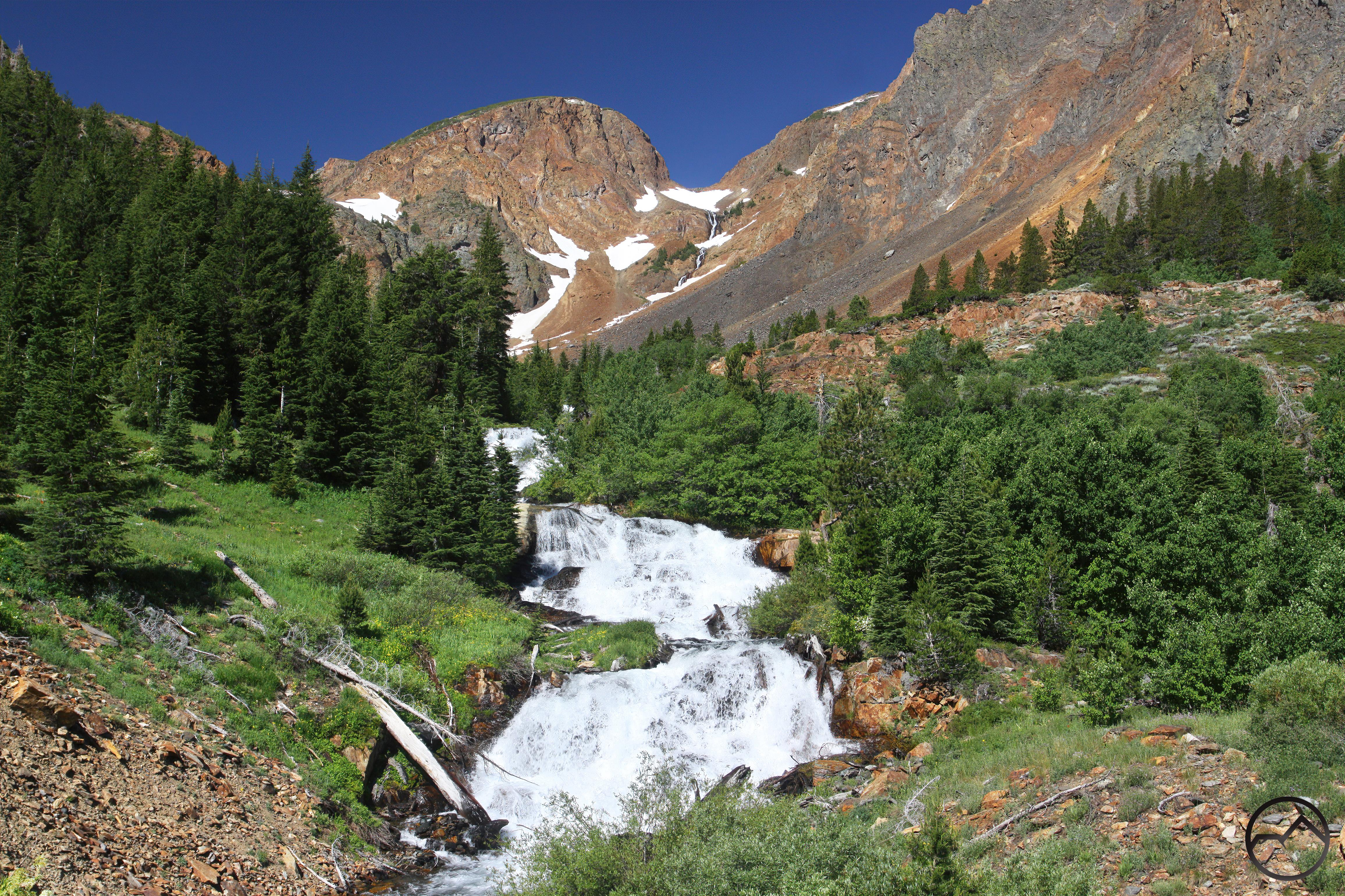 In my opinion, few hikes can match the fullness of attributes that made this hike the greater sum of the parts. Beginning at a series of beaver ponds, the trail winds through wildflower choked and the many-hued cliffs of Lundy Canyon. Entirely within the terrific Hoover Wilderness, the path parallels Mill Creek, which crashes over a series of large waterfalls. Eventually the trail turned south and made a long series of switchbacks up the side of the canyon, climbing alongside a waterfall plunging hundreds of feet down the cliffs. Eventually reaching the top of the canyon, the trail leveled off, left the artist’s palette of many colored rocks and made a loop through the granite wonderland of the 20 Lakes Basin. While visiting half the namesake lakes of the the basin, hikers are perpetually treated to views of lordly Mount Conness and the serrate visage of towering North Peak. Then, completing the loop, it’s back down into Lundy Canyon soaking up incredible vistas the entire way.