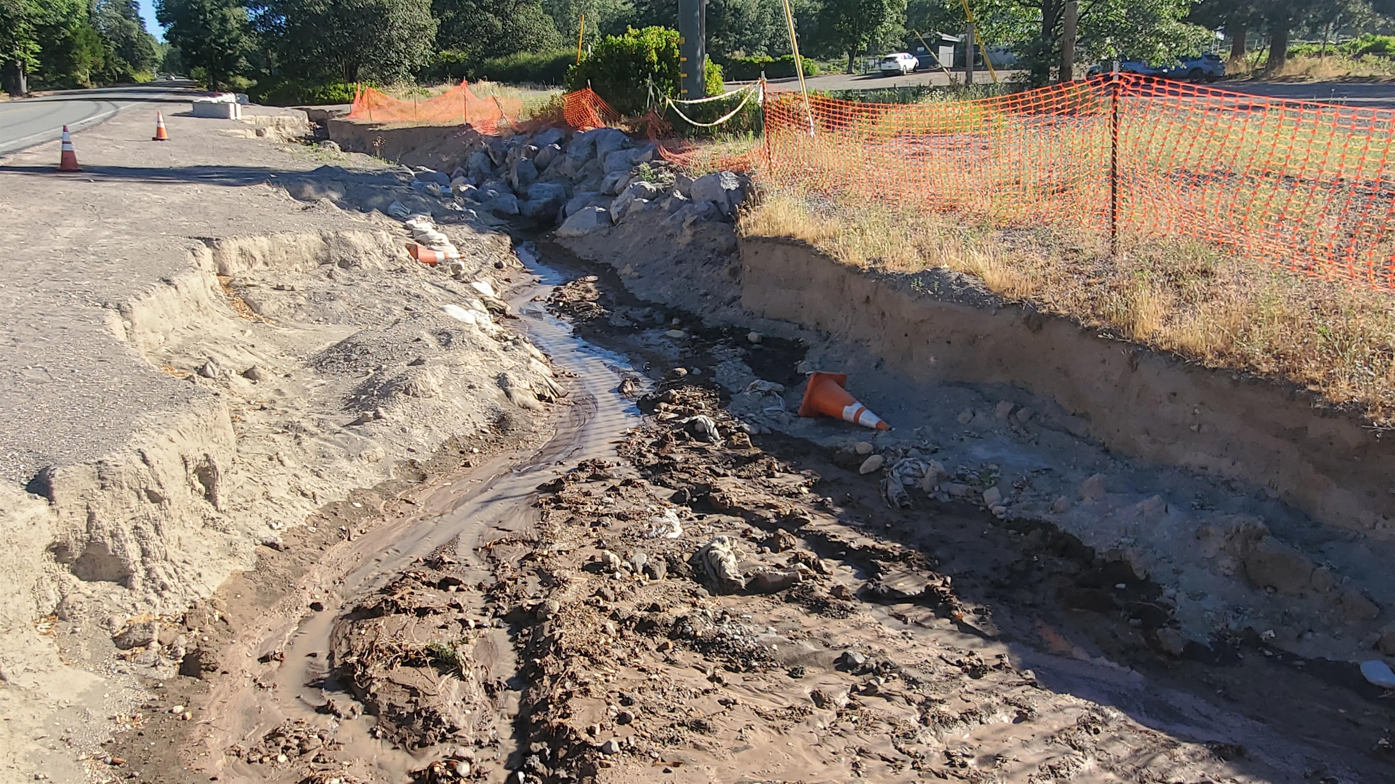 - Higher up on Everett Memorial Highway. The mud was largely cleaned up but the scale of the flow was still evident.