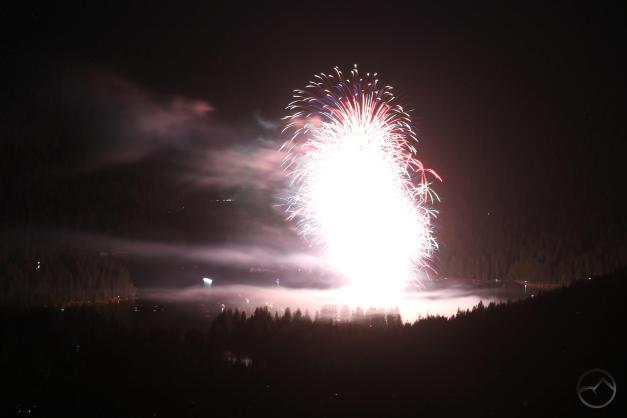 Independence Day came right at the onset of the heat that has persisted all month. My family has never had a single tradition for where to go to watch the fireworks launched over Lake Siskiyou. We’ve gone to the launch site (have friends that are involved with the fireworks), to friends houses nearby etc. This year, to beat the heat, we headed up to a spot with a great view up on Mount Shasta. Though warm, it was noticeably cooler here and the view of Lake Siskiyou, as well as the high peaks of the Castle Crags Wilderness is excellent.