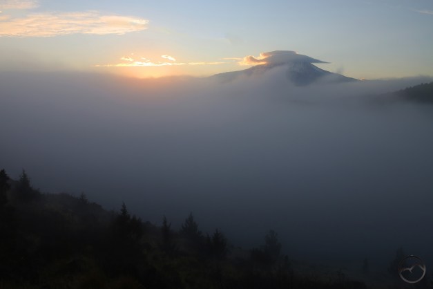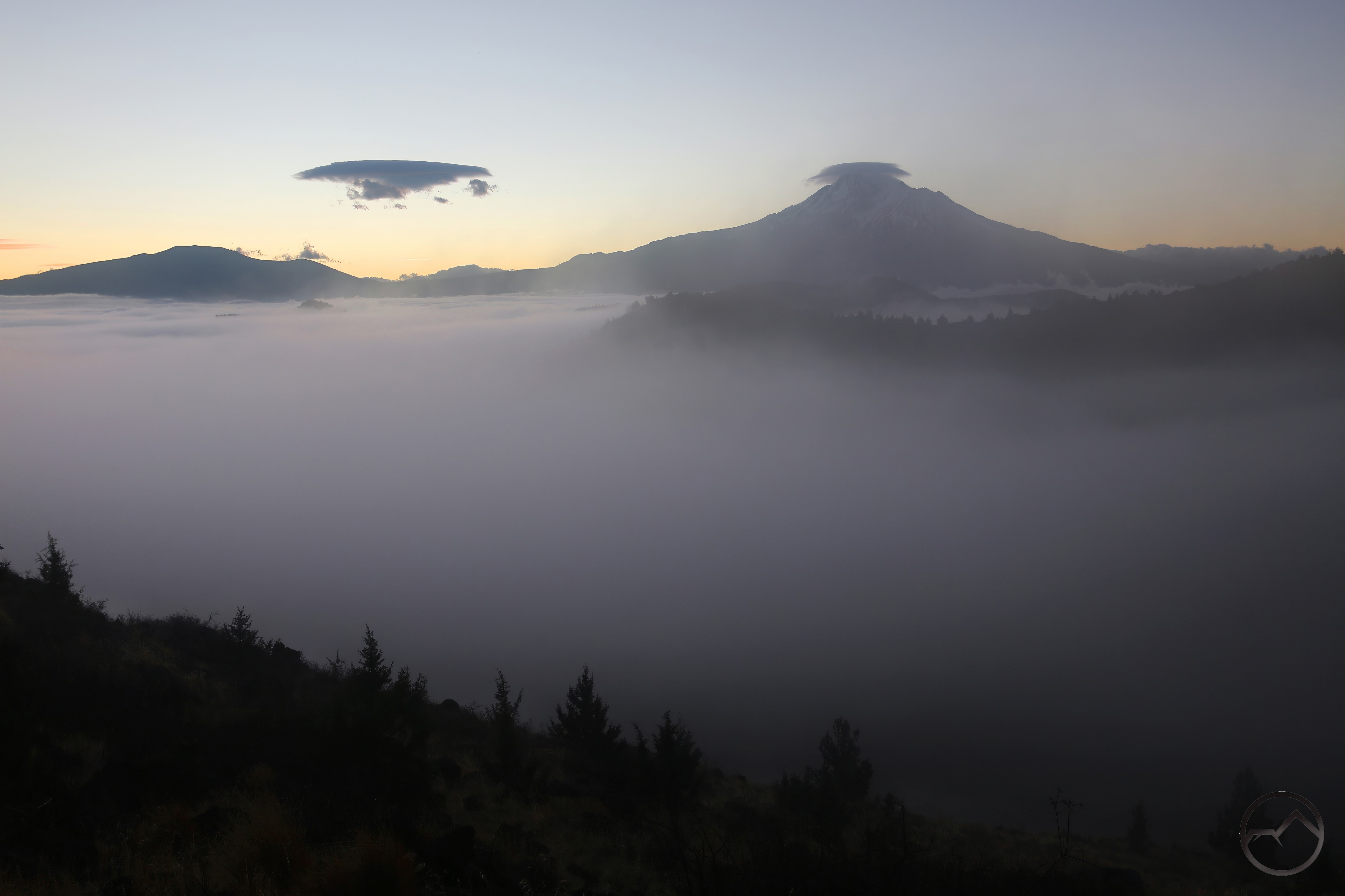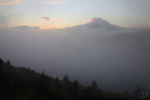 Finally, the mist settled just enough for Mount Shasta to be seen clearly above the vaporous sea. The free floating lenticular had dissipated but the one on the mountain’s summit had grown considerably. This corresponding retraction and growth is something I have observed quite a bit with lenticulars. Unfortunately, I did not observe it very long this time. A deep wave flowed toward me and completely swept over Echo Point, ending my view of anything not a few dozen feet from me.