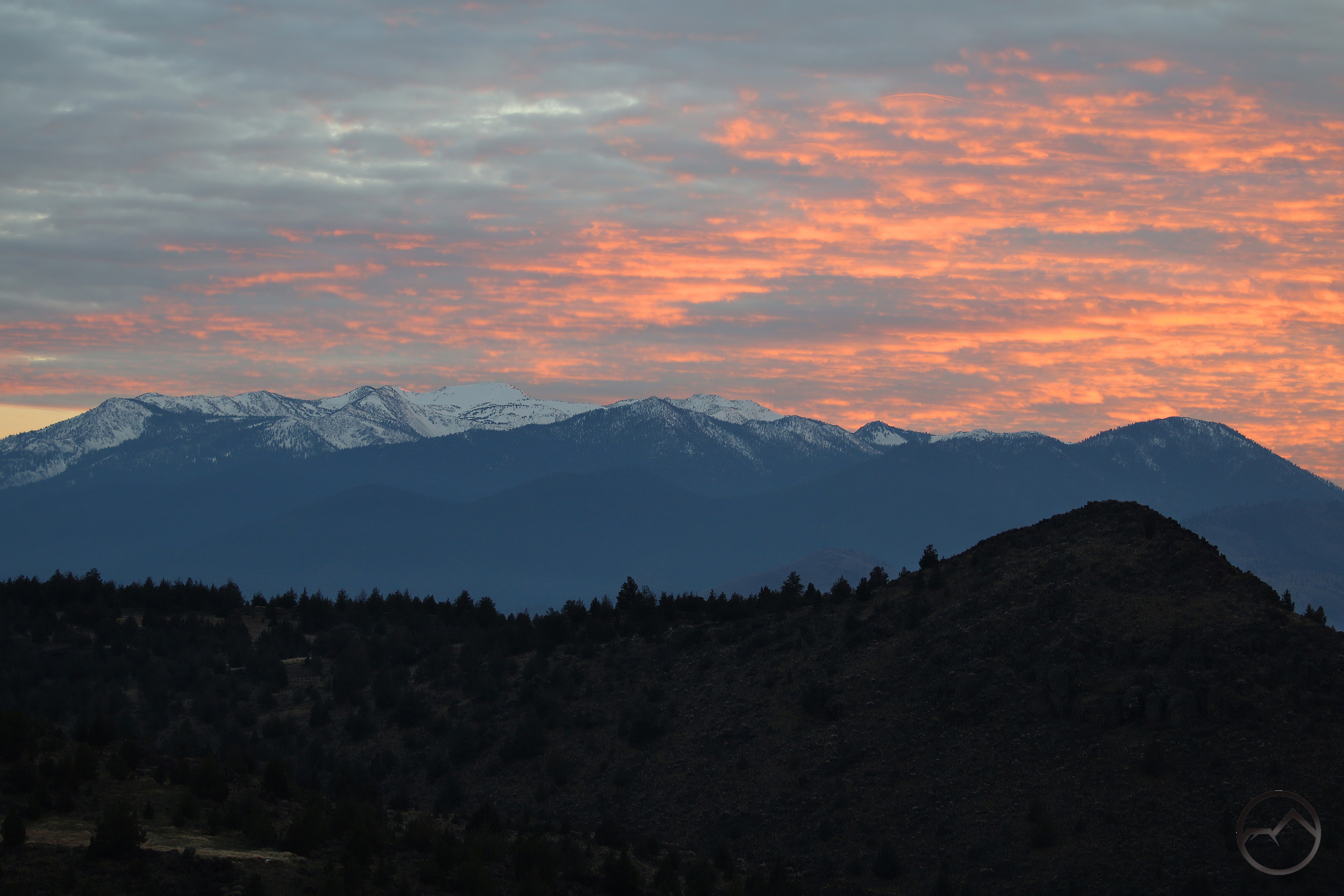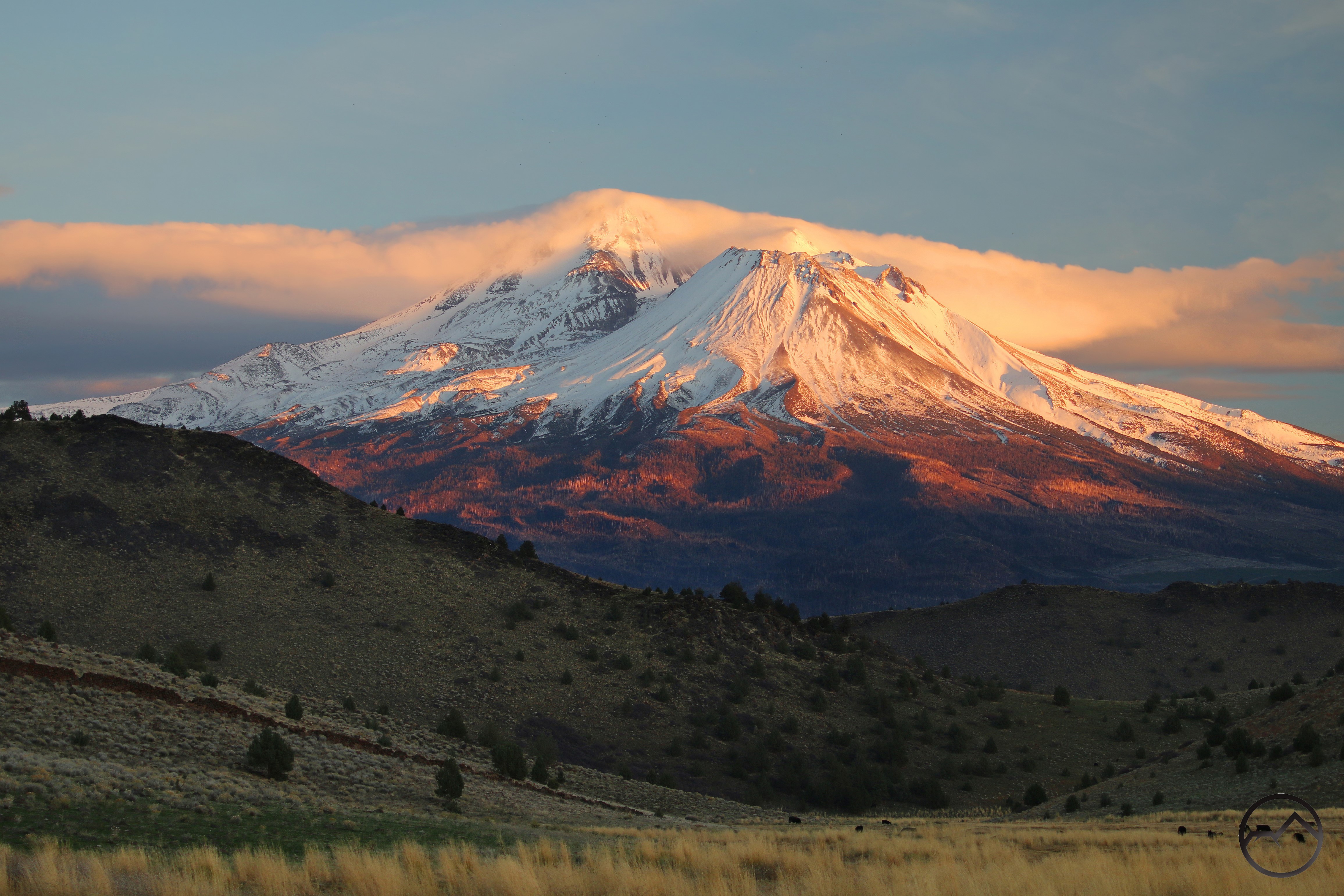 A couple weeks ago, during a break in the storm, my wife and I headed up into the Shasta Valley to watch the sunset. We opted to not go to Truchas Ridge but stayed nearby. The color on the mountain turned out to be quite nice and we were glad we had made the quick trip out there after all the rain had fallen.