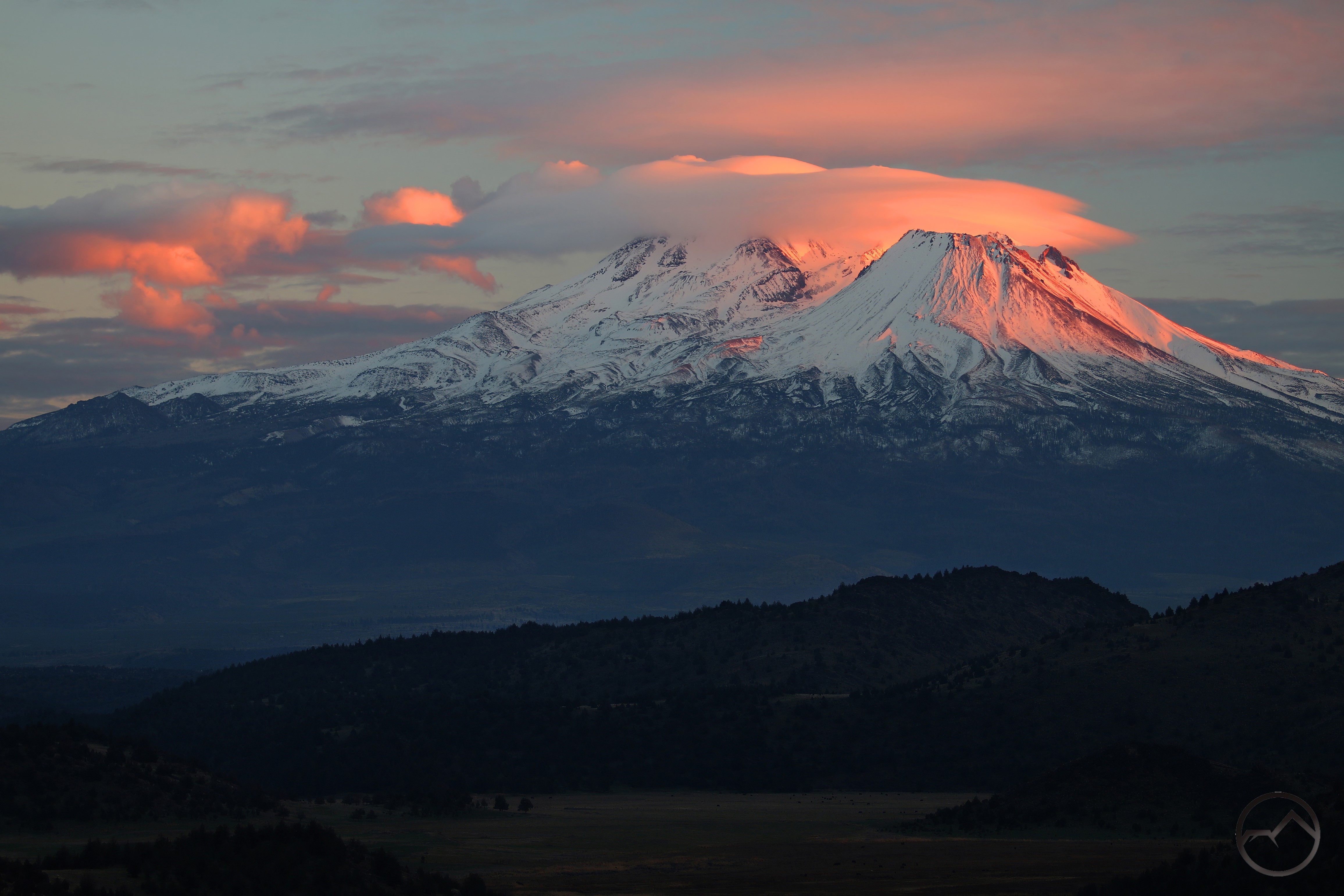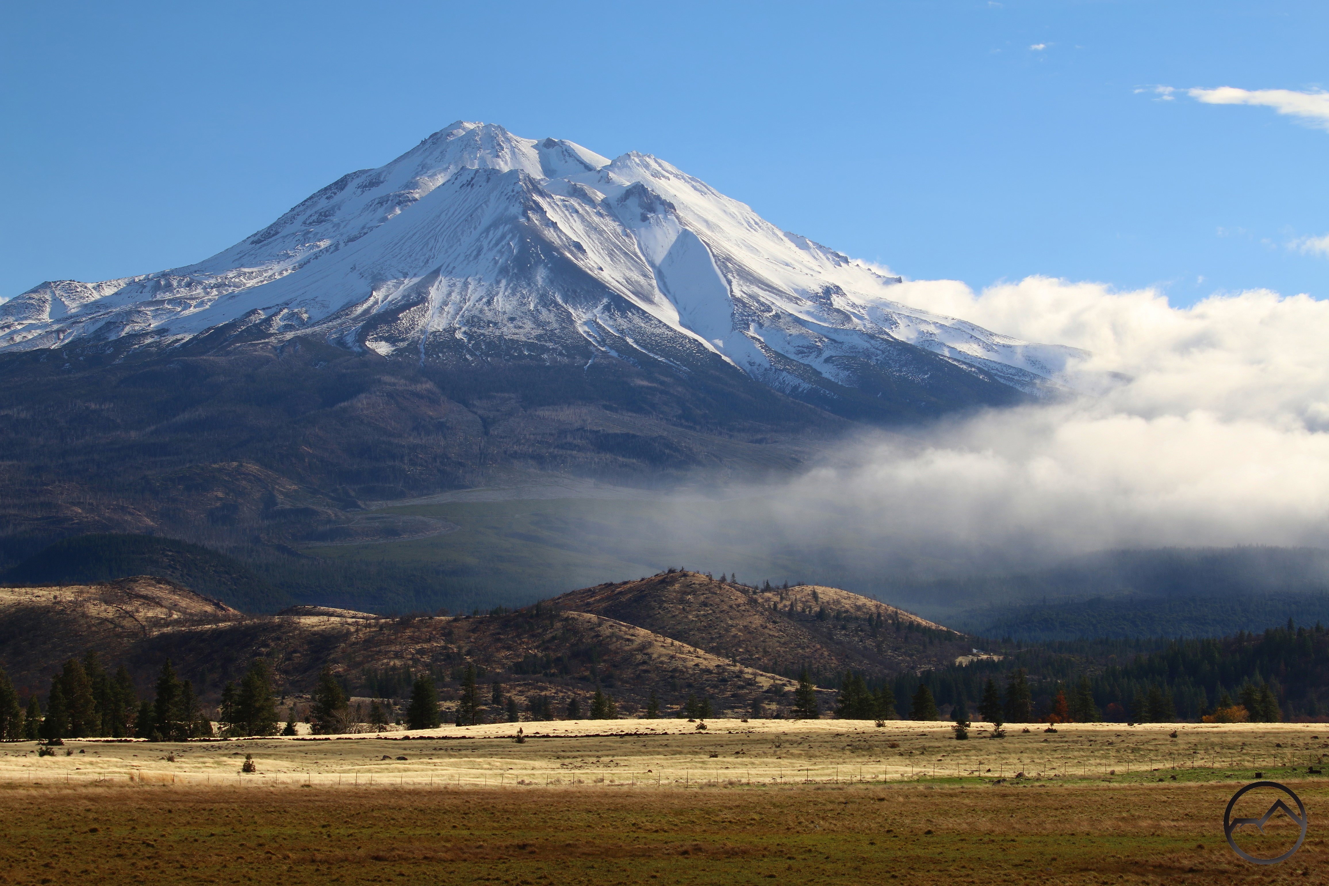 There really isn’t too much to this post, other than to populate it with some images of Mount Shasta that I have been able to capture in the midst of an otherwise very busy month. Once again, the lethal combination of clinic, school and Christmas trees has kept me pretty occupied and limited the amount of time I had to do anything. This wasn’t a unbearable, since much of the month was punctuated with storms. These left Mount Shasta with a solid blanket of snow, which has fully restored it to its winter glory after the summer. It is notable, however, that this is the first winter in quite a few years we haven’t had any snow at all at lower elevations. There has been none at my house. Given how wet the month has been, it is just notable, not concerning. For the last 5 days or so it has been gorgeous weather and that looks like a trend continuing into December.