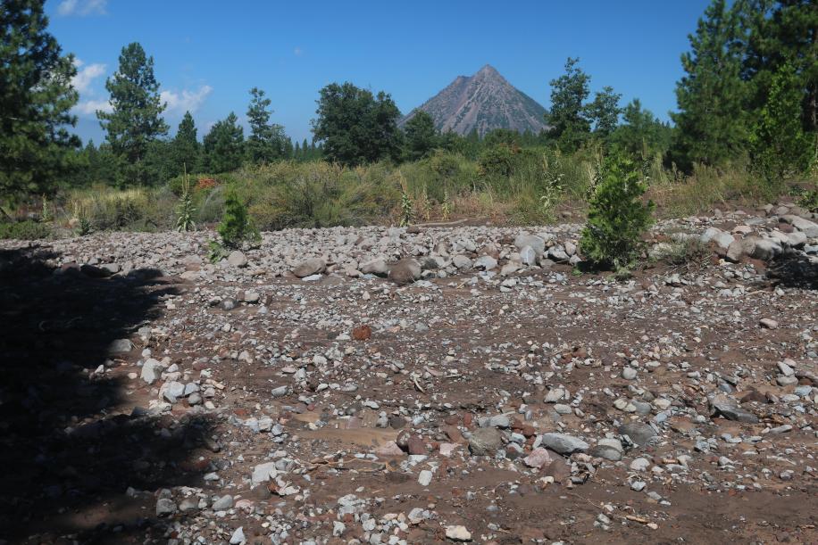 Cascades, Mt. Shasta – Aug2023 (662) (Custom) Posted by bubbasuess on August 26, 2023 Black Butte is visible above the slide-covered roadbed.