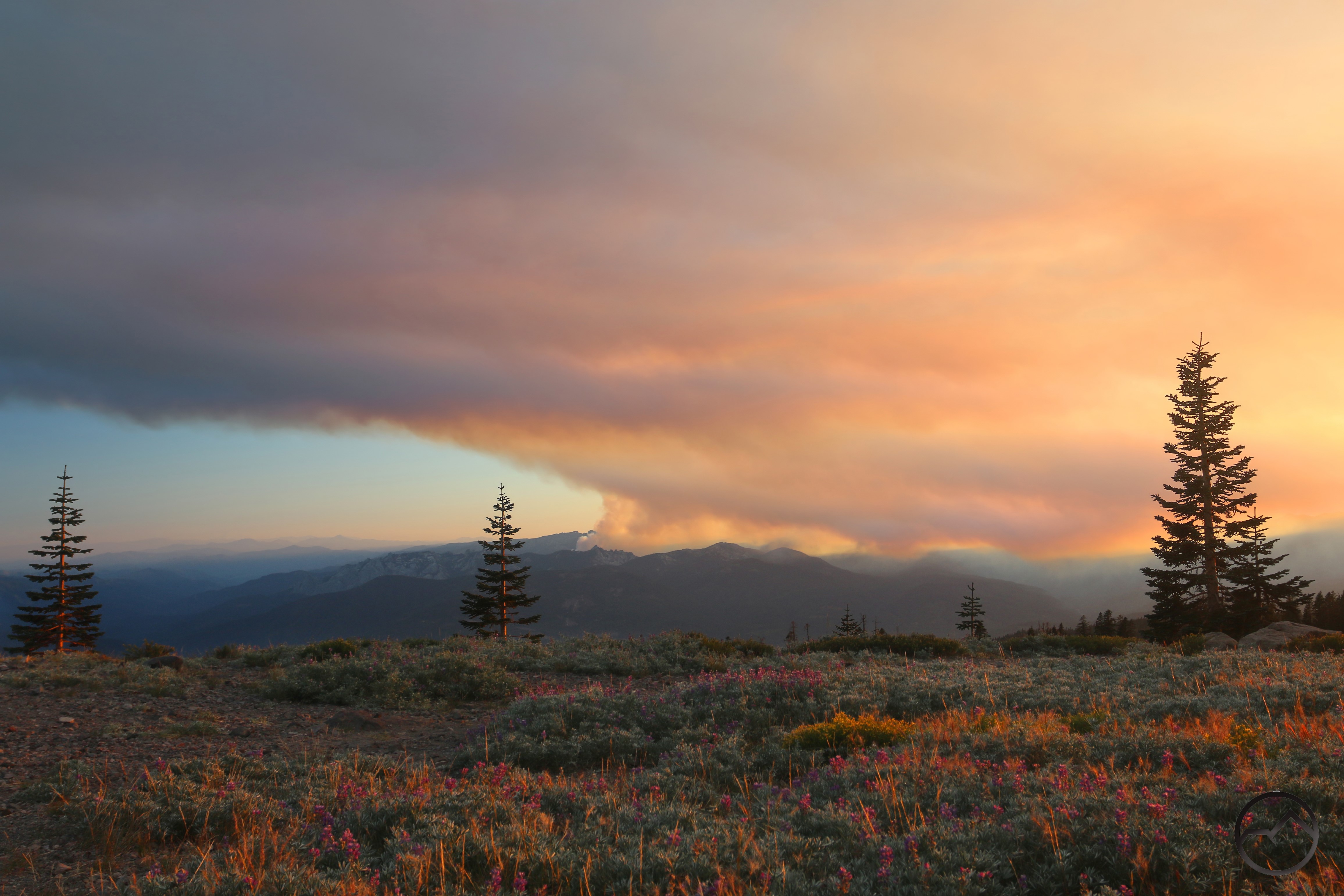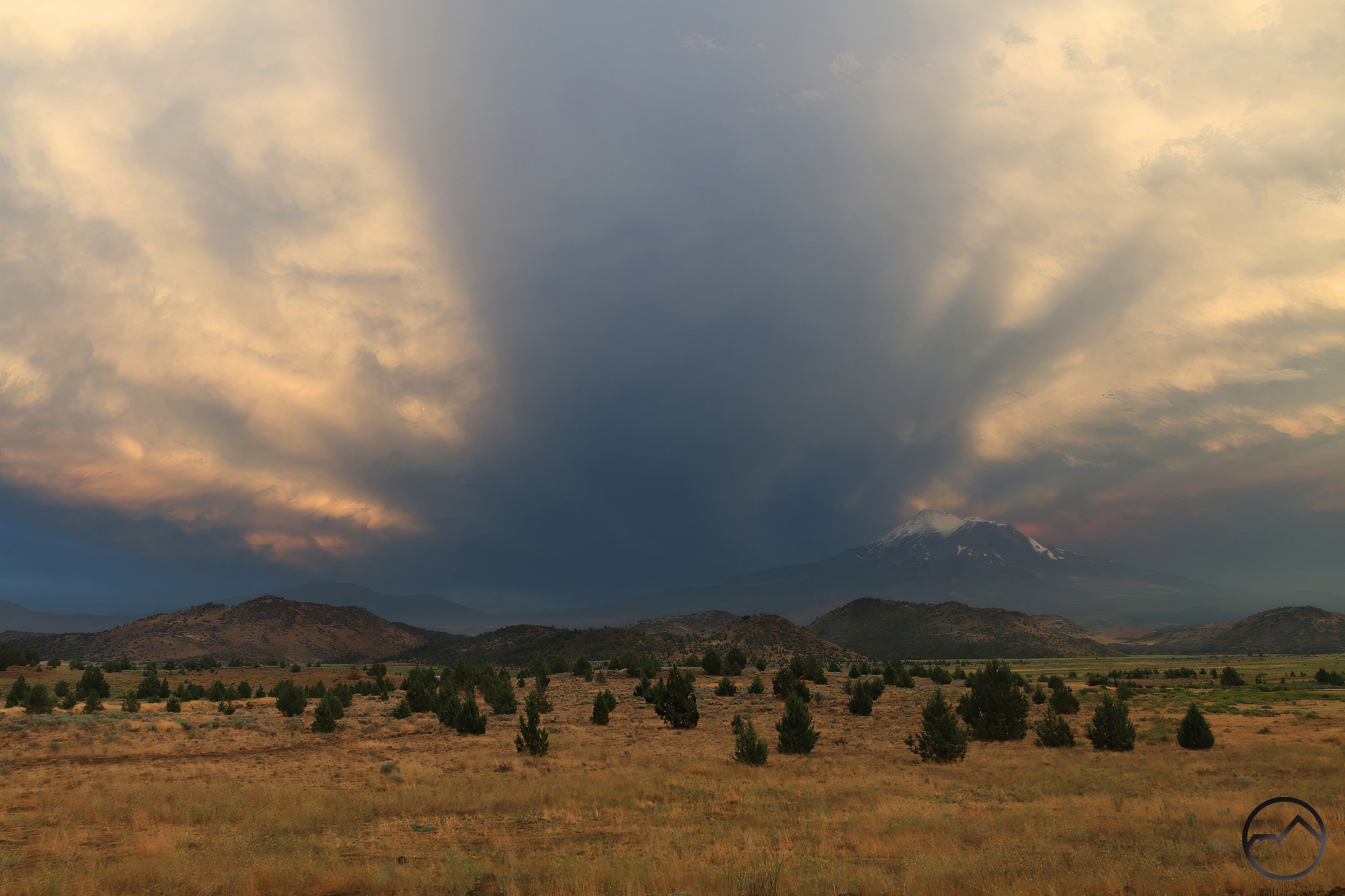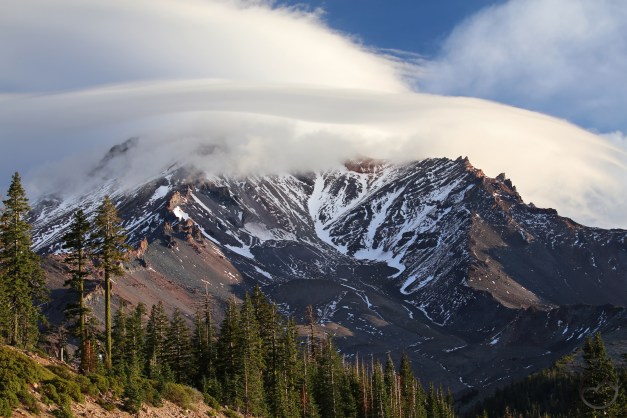 The cloud was still strong in the afternoon so I planned on heading out to Truchas Ridge for the sunset. This time, I decided not to go to Echo Point but to the old favorite of Panorama Point. It has been a while since I have been up there and I got there a little later than I anticipated. The light was starting to fade in Parks Creek’s vale but I was able to capture a shot before it was gone. The cloud on Mount Shasta was much smaller at this point but the one that couldn’t muster its strength all day finally significantly, developing into a blobby form over the summit.