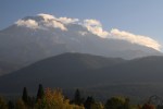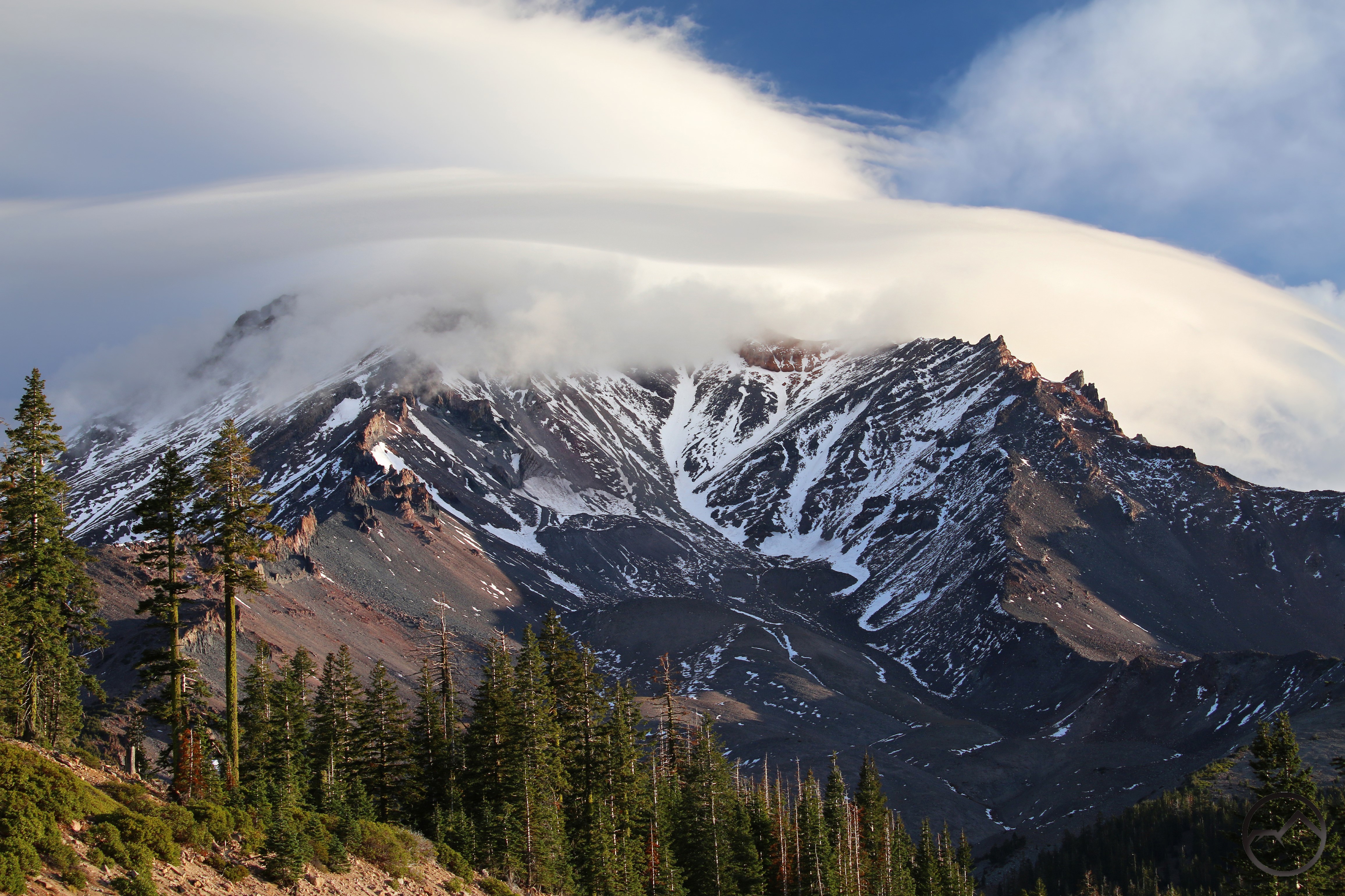 To my surprise, by noon a serious cap had formed over Mount Shasta. This new display was a large stack composed of intricate layers forming an impressive dome. A small, secondary disk kept trying to form above it but it had a hard time sustaining itself and would often disappear before coalescing again for a brief time.
