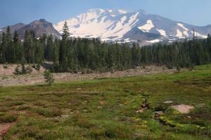 Below the cascades large meadows fill broad valleys. The tributaries flow into the meadow, which holds the waters deep into summer, sustaining Parks Creek longer than many other creeks in the area. The creek flowing through these meadows is blessed with extraordinary serenity and one of the healthiest watercourses around Mount Shasta.