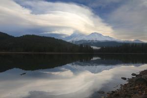 - Mount Shasta reflects in a pool by Steamboat Mountain.