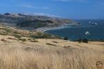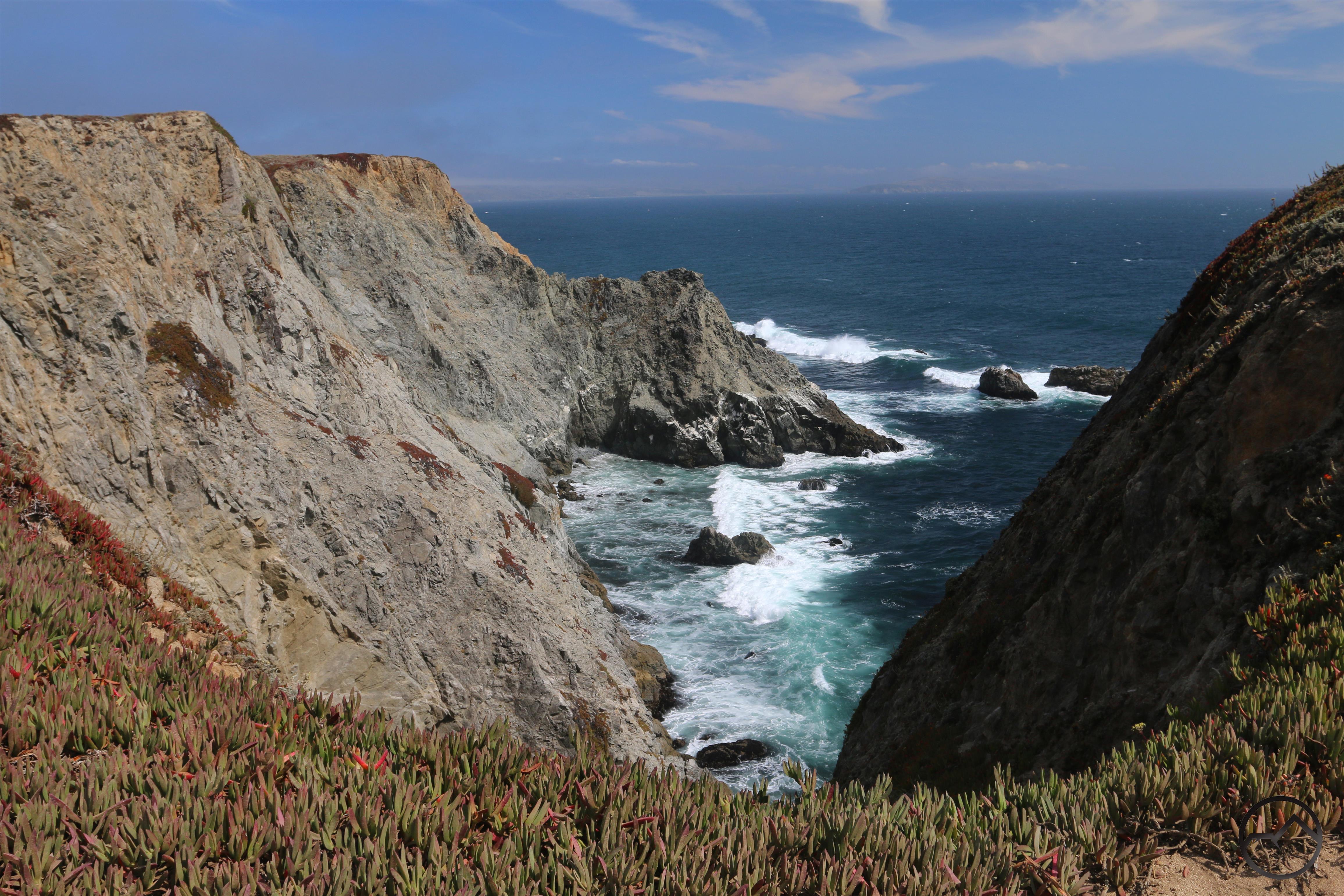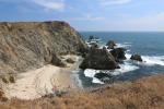 The coast of Sonoma County is at once subdued and spectacular. The more accessible areas lack the grand cliffs found at the Lost Coast and Big Sur but the presence of sea stacks gives it some fantastic drama nonetheless. Farther north the mountains along the shore increase in size but the number of parks and trails is fewer, though this area can still be enjoyed via Highway 1. One particularly interesting feature is Bodega Head, a large rocky finger attached to the mainland by a large sandbar. The head itself invisibly divided from the mainland by the San Andreas Fault. Consequently, the bluffs of Bodega Head are composed of granite, the only place in the entire county where such rocks are to be found in significant concentration.