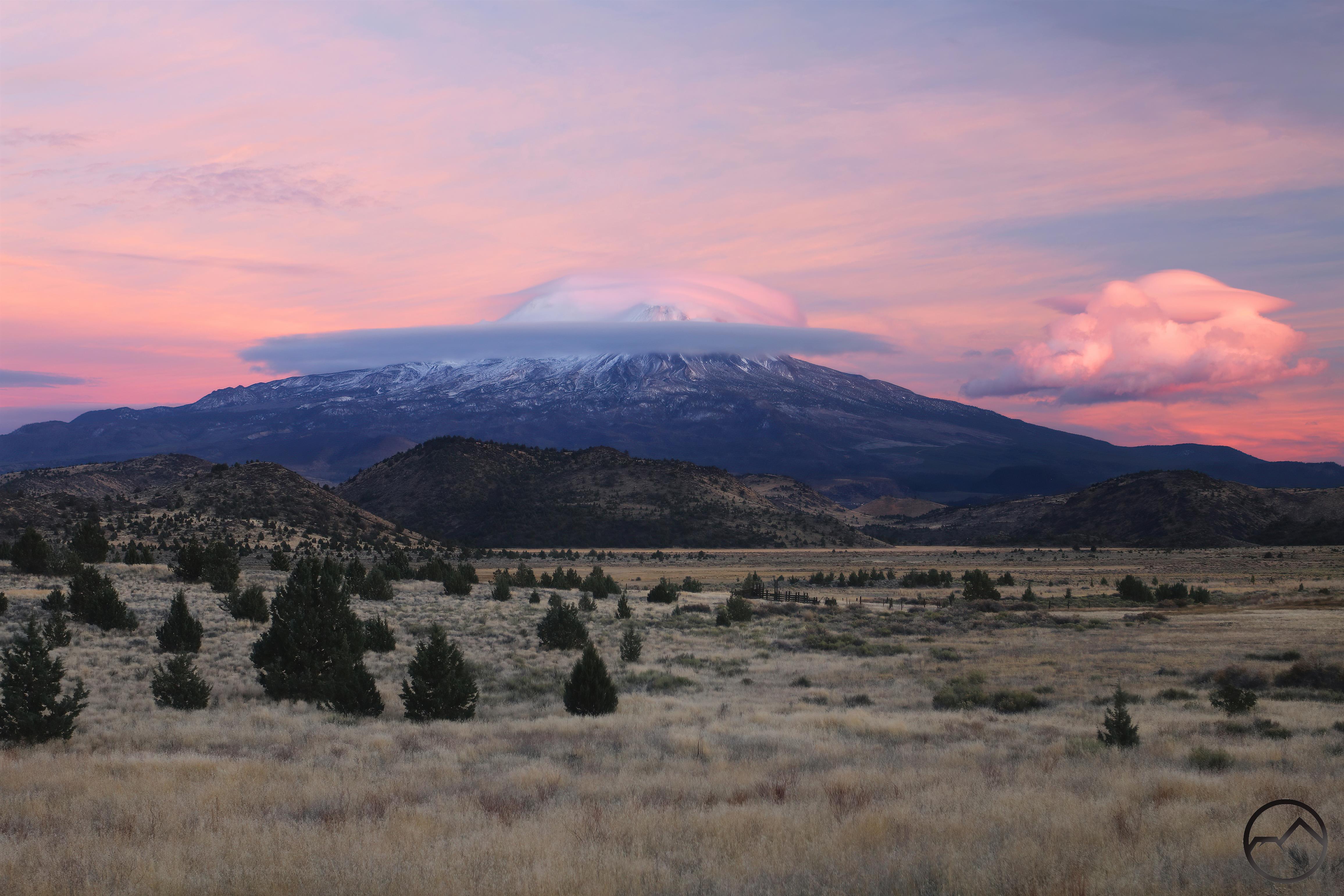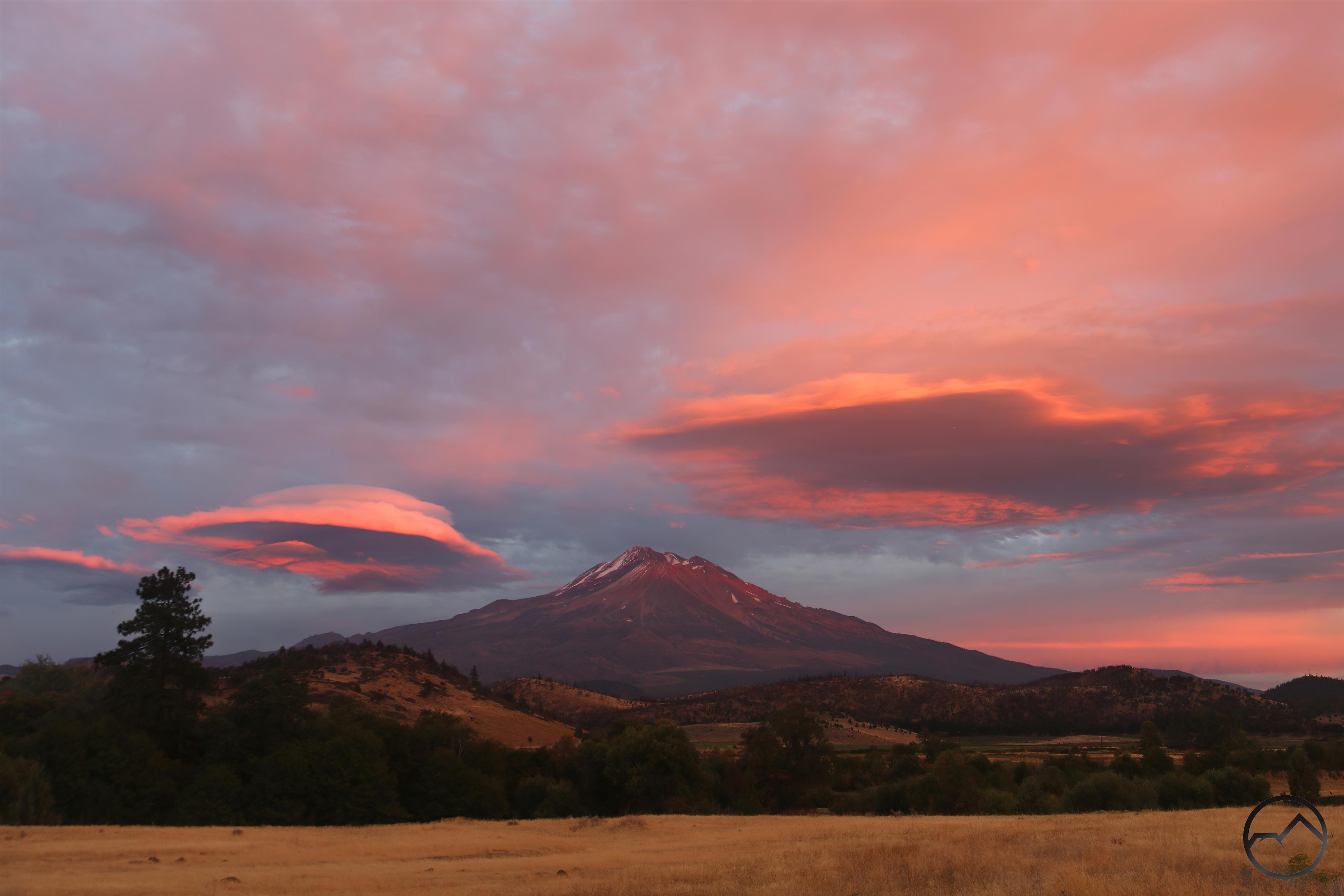 After dropping my truck off and heading out into the Shasta Valley, I got to a decent vantage point just as the colors really flared up. Pinks and purples filled the sky and the mountain itself glowed in the reflected color of the setting sun. It was a spectacular end to a busy day. I hope we have many more lenticulars in the near future!
