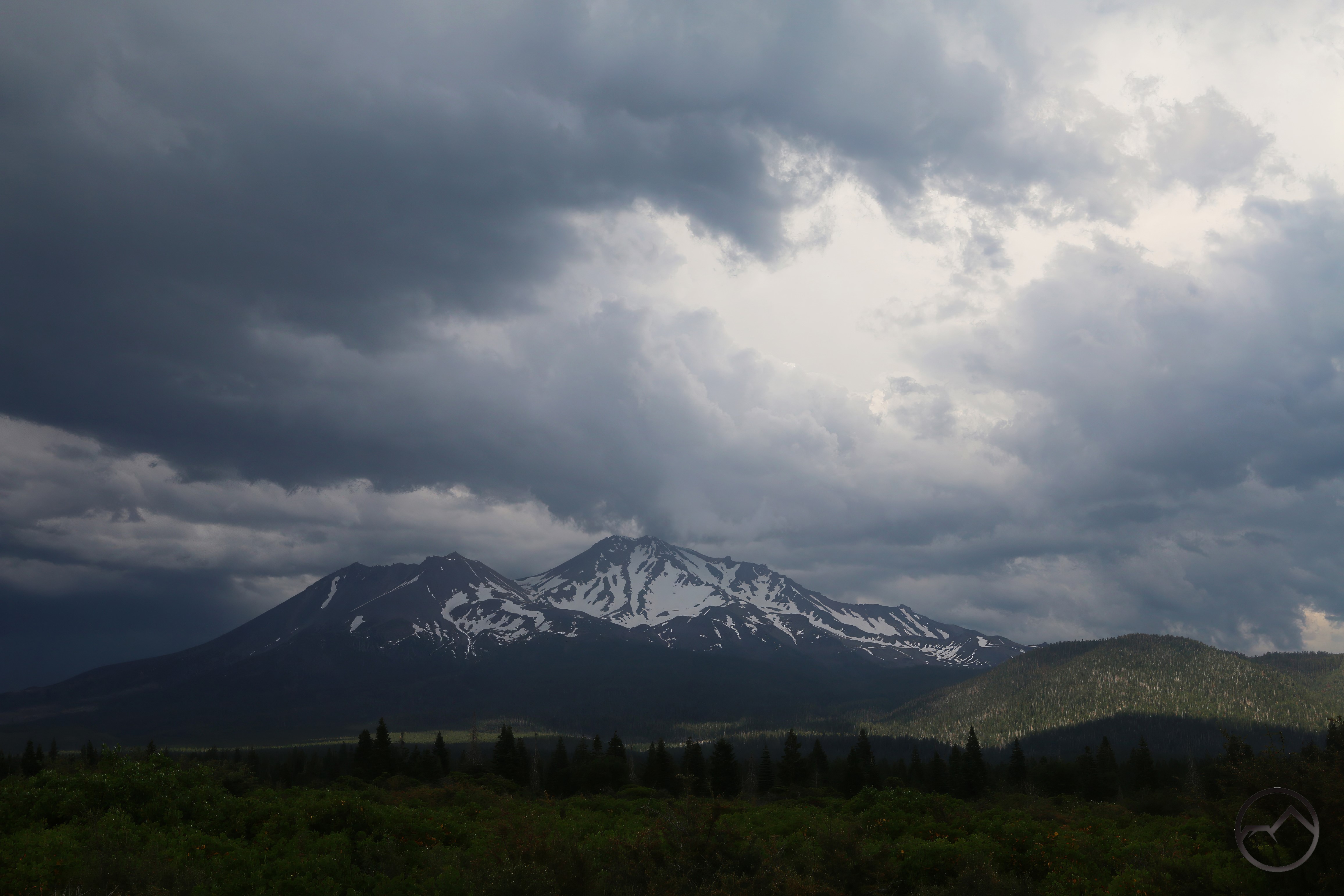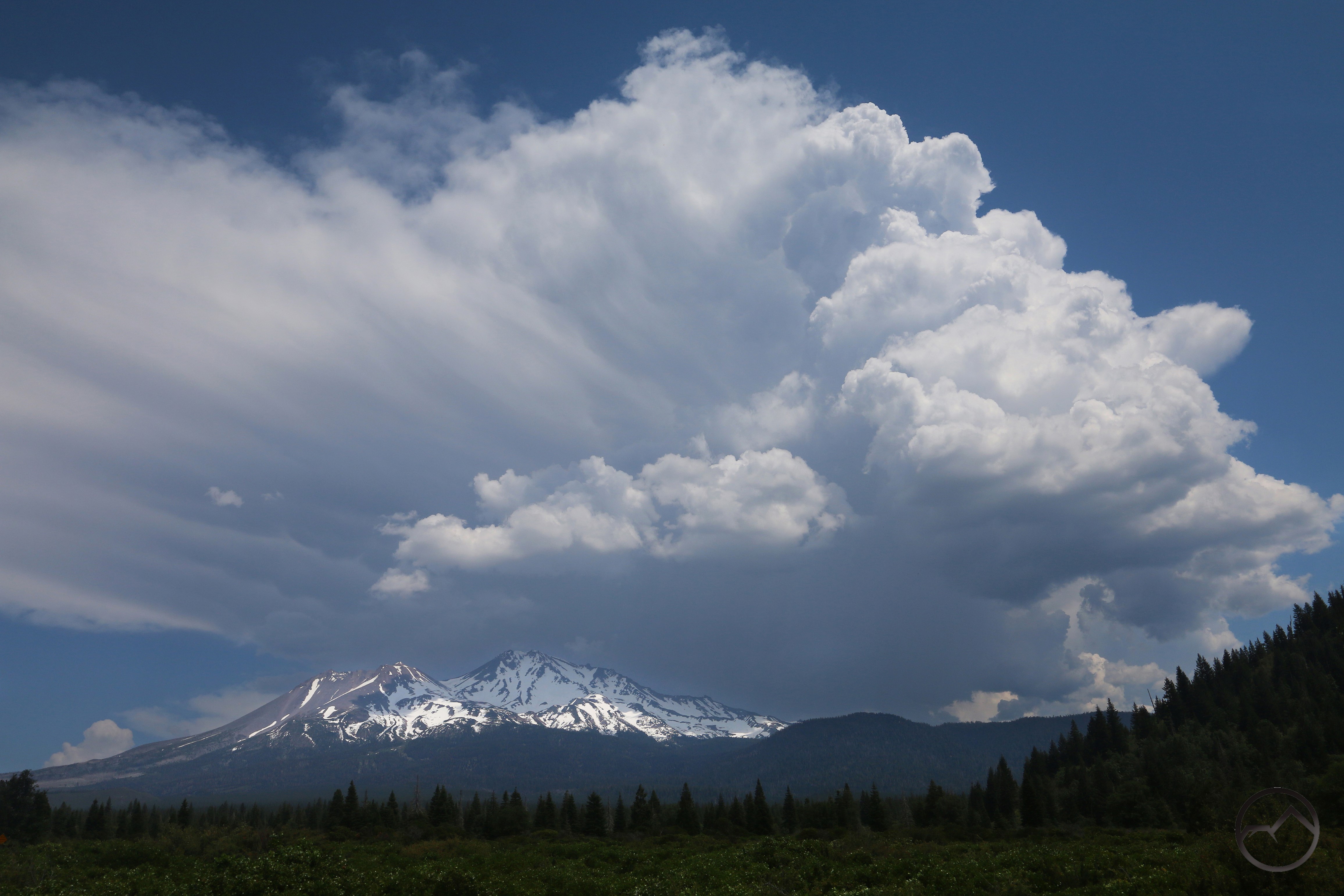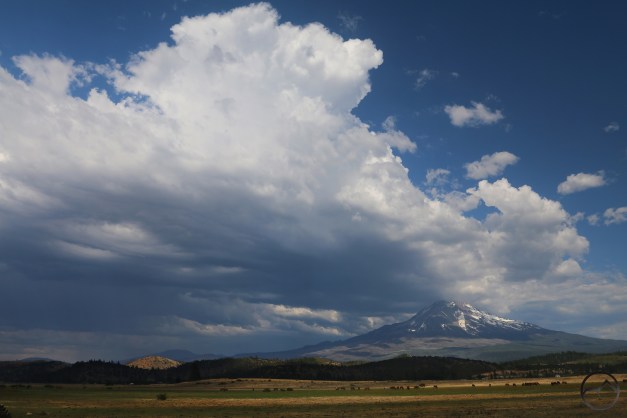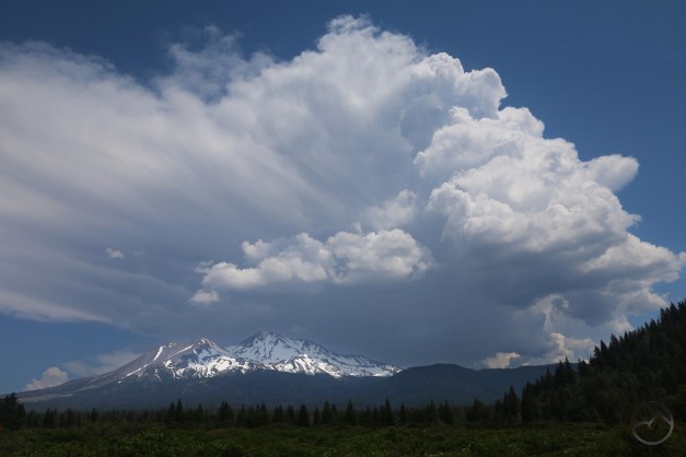 The heart of the formation was a massive lenticular stack above the summit of Mount Shasta. It caught the morning light in terrific fashion. It didn’t have much purple but it pulsated with pink and orange light. The intricate layers, each nestled one within the other, the shadows and dark clouds only serving to highlight the shape of the next strata of the cloud. This is the kind of lenticular one waits all season for.
