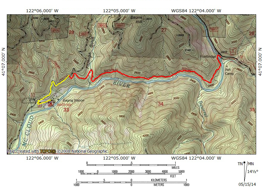 A pleasantly level section of the PCT that parallels the McCloud River through a remote and rugged canyon, ending at scenic Ah-Di-Na campground with historic ruins and great river access.