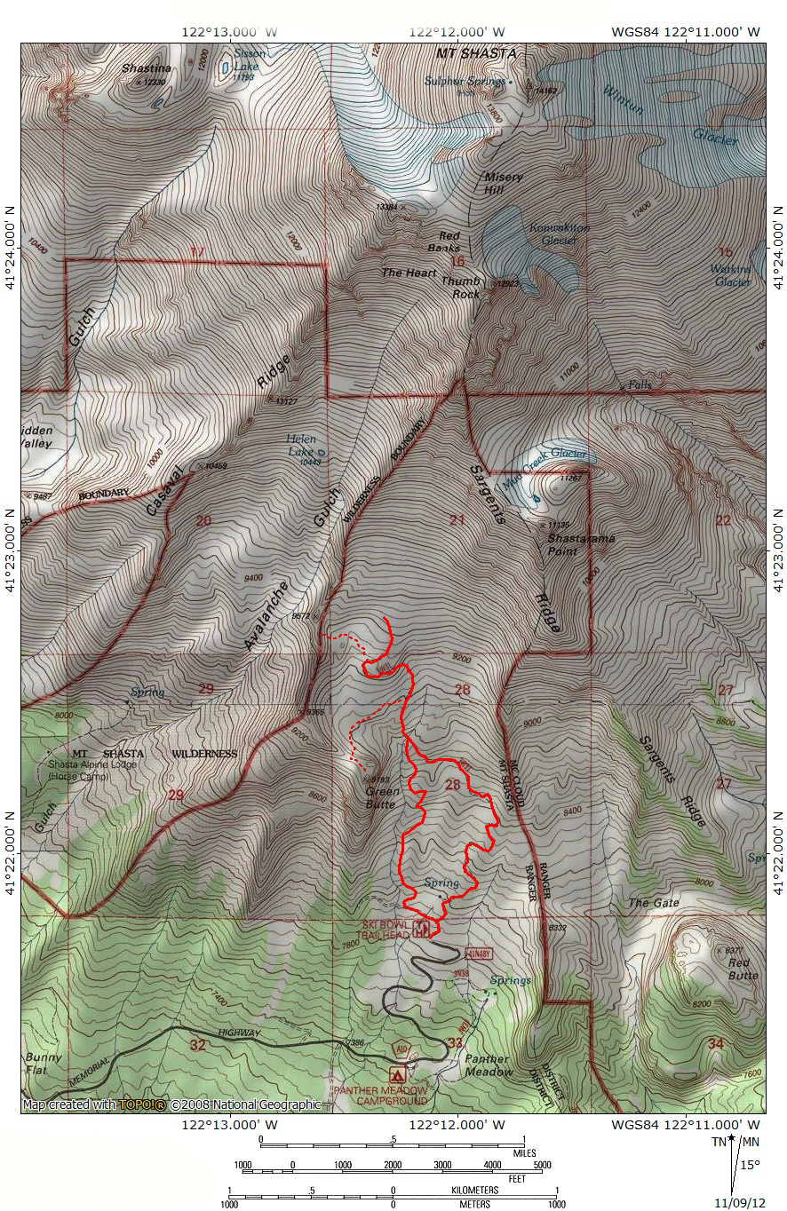• Wilson, this site caters to hikers not mountaineers. Try Chris and Jen at Shasta Mountain Guides at 105 East Lake St, Mt Shasta if you are still interested in answers to your questions!