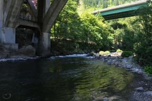 The Dunsmuir Botanical Gardens are part of a large city park complex and are well known in the community. Among other features, the park contains a baseball field where Babe Ruth once played. Tauhindauli Park, on the other hand, is not well known outside of Dunsmuir. Despite its relative anonymity, it is a great spot from which to enjoy the river. There are a few things that stand out and make the park less than ideal, among them a small sub station and the large bridges that support I-5 and Dunsmuir Avenue. These latter features make their presence felt and draw the eye instantly upon arrival. Despite these disruptions of the natural setting, the park remains beautiful and offers great access to the Sacramento River. More information about the park can be found here.