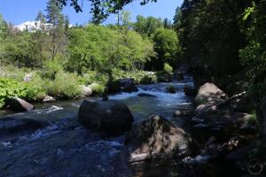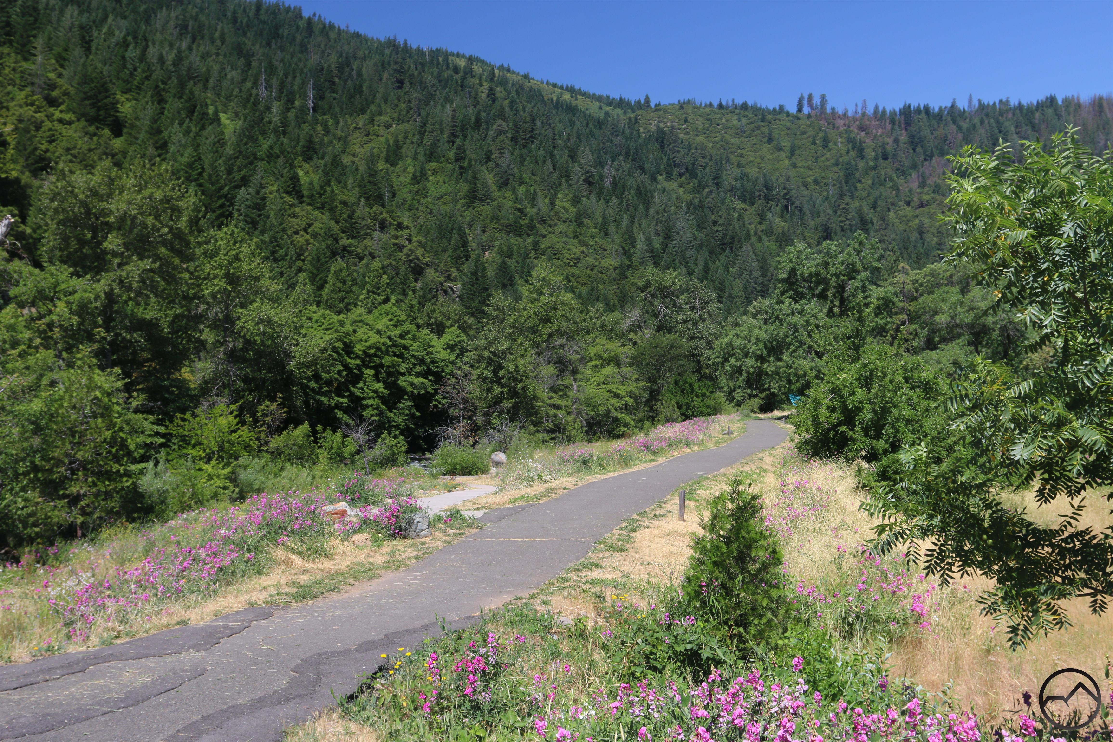 The city of Dunsmuir is inseparable from the Sacramento River. The community is nestled into the steep-walled river canyon, filling in a few level areas and climbing up the precipitous slopes. Through it flows the river, dividing the city into distinct neighborhoods and giving Dunsmuir a riparian flare absent from all the other communities around Mount Shasta. Through most of the city the river front is well-developed by both the urban development and the presence of the railroad. Nonetheless some natural areas remain and the most extensive and notable is the section from Cave Springs to Interstate 5 overpass over the river. Conveniently, this area also lies between two notable city parks, the Dunsmuir Botanical Gardens and the less well-known Tauhindauli Park. A pleasant trail runs between the two parks, offering great river access, good views of the the river canyon and all the amenities at both parks. The hike can be a destination on its own but is close enough to downtown Dunsmuir that it can be reached by foot as well.