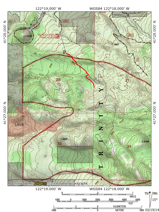 A brief note on the taxonomy of the trail is worth mentioning. Despite falling within the boundary of the Mount Shasta Wilderness, this route has been placed in the Shasta Valley section. The reasons for this are manifold. First, the trail is dramatically different from every other trail on Mount Shasta. The other 9 trails are all high elevation, offer great views of Mount Shasta and surrounding areas and give hikers a sense of being high in the mountains. The Black Lava Trail is a low elevation trail only a few hundred feet higher than areas traveled by the Yellow Butte and Haystack Trails, highlights of the Shasta Valley area. Moreover, the drive in to the trailhead passes through the high desert environment of the Shasta Valley. This continues all the way to the roads end at the trailhead. Lastly, when hikers are sifting through the hiking options on Mount Shasta, they are likely to be looking for hiking opportunities more typical of the higher elevation trails that lurk around treeline. The Black Lava Trail would not be a fitting option for those looking for an alpine experience. Conversely, hikers looking for good trails to do in the off season, which includes the trails in the Shasta Valley, are more likely to hike the low elevation Black Lava Trail when temperatures are cooler and the higher elevation options are still covered in snow. Taxonomically it is odd not to include the trail with the other Mount Shasta trails. Practically it is a better fit associated with the Shasta Valley trails.