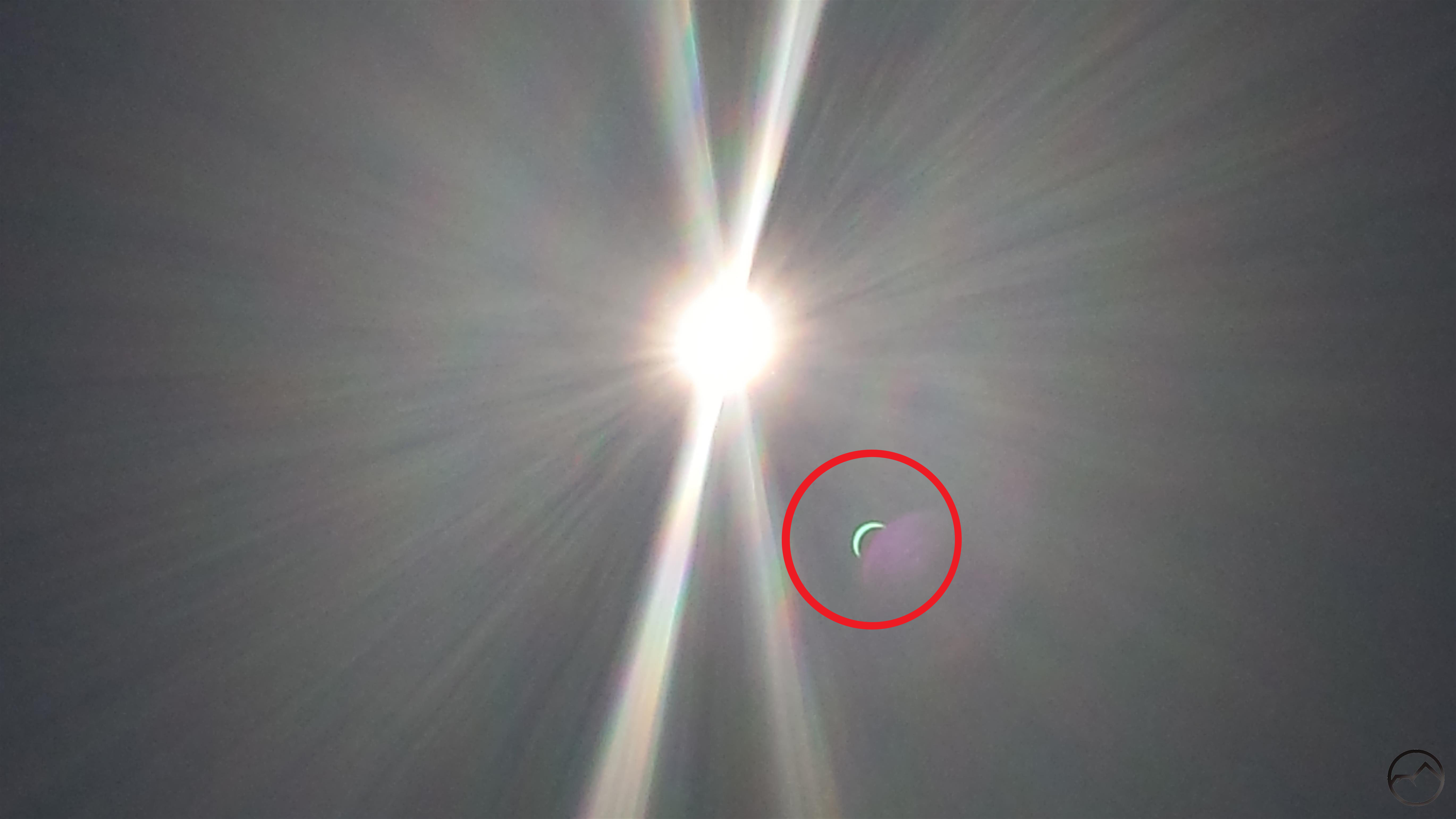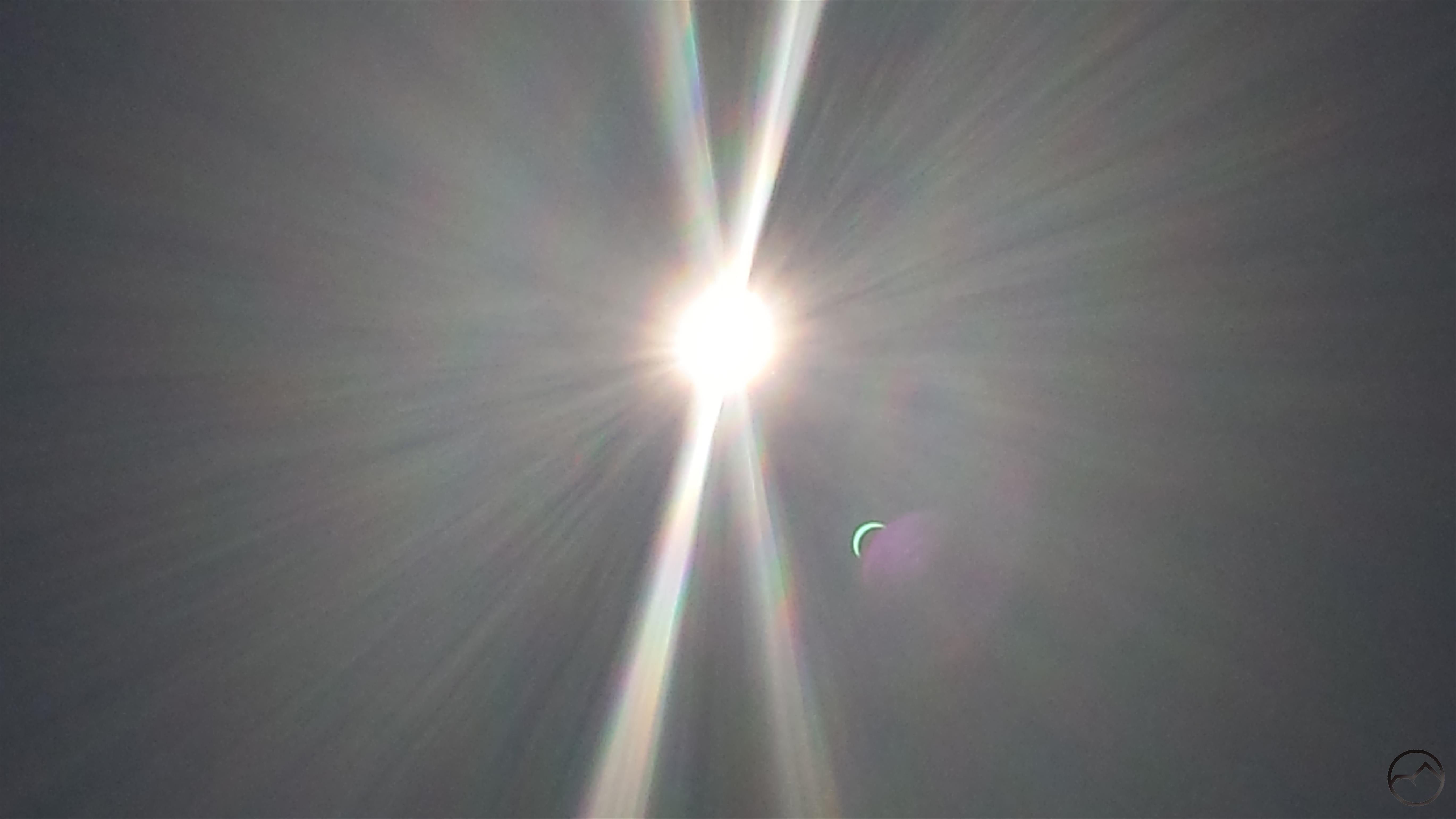 For all the planning we did, I forgot the eclipse filter for my camera. I am such a fool. For my error, I had to settle for an image capturing the half-light and the eclipse only visible in the strange lens flare. For once I was glad for that effect, though the colors were really unusual.
