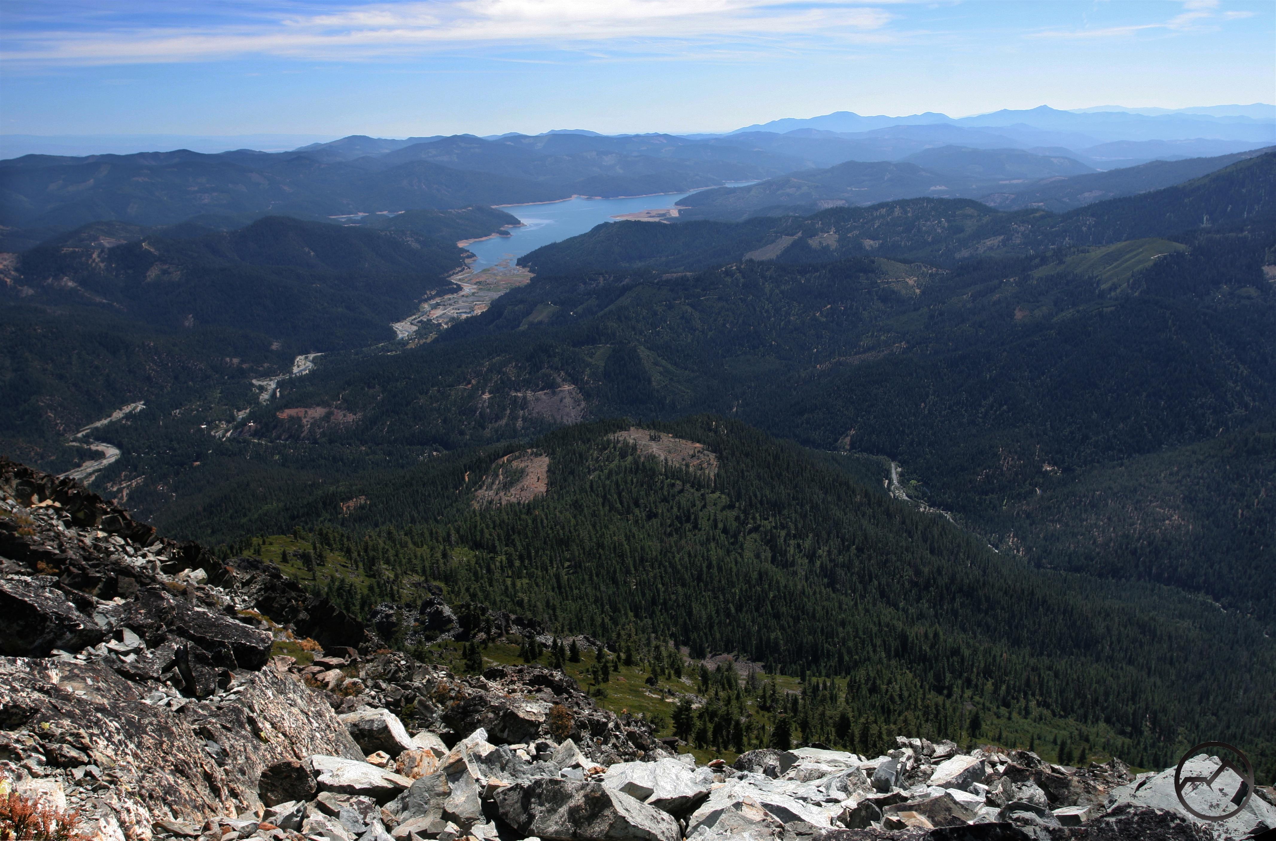 Trinity Lake, far below the summit of Billys Peak Lookout.